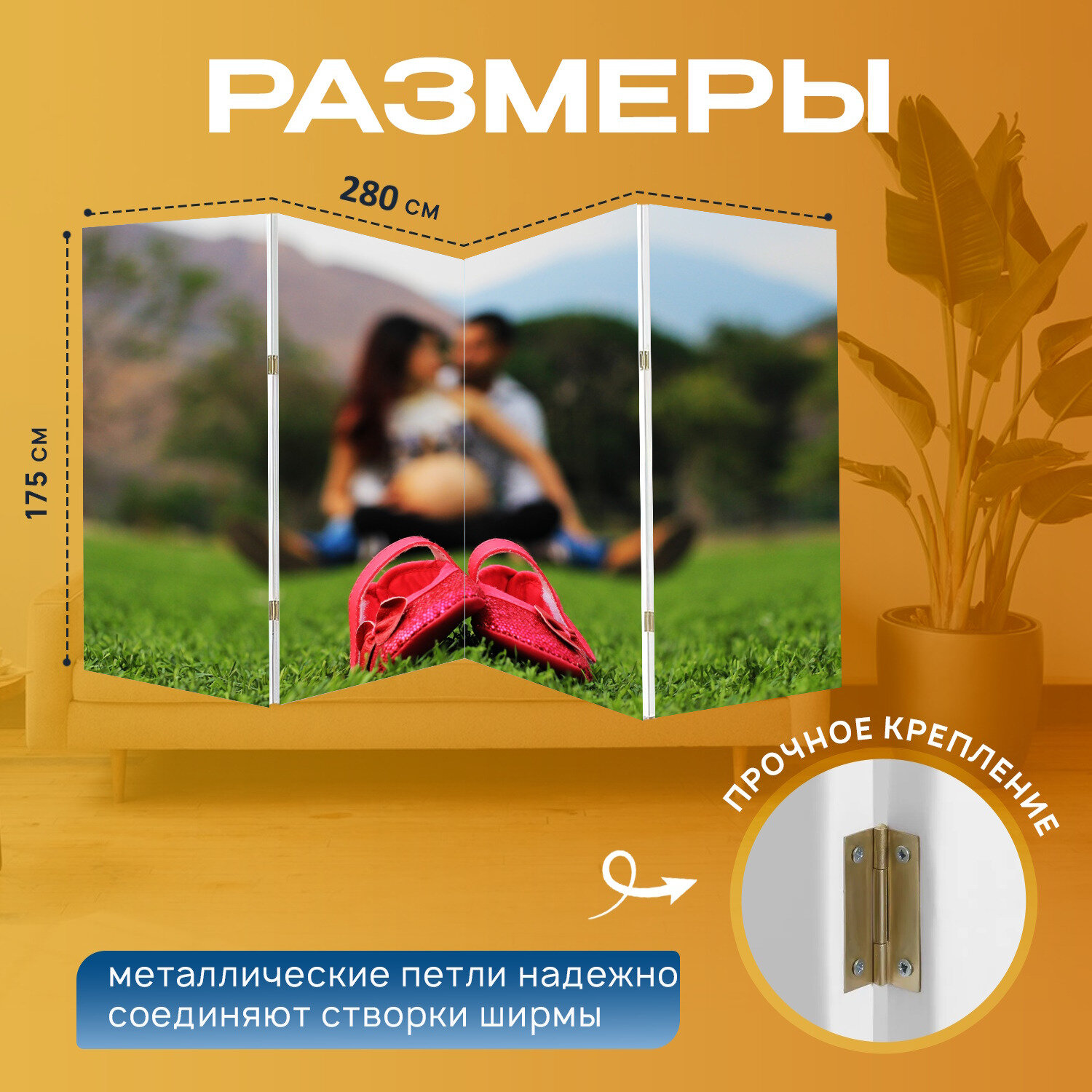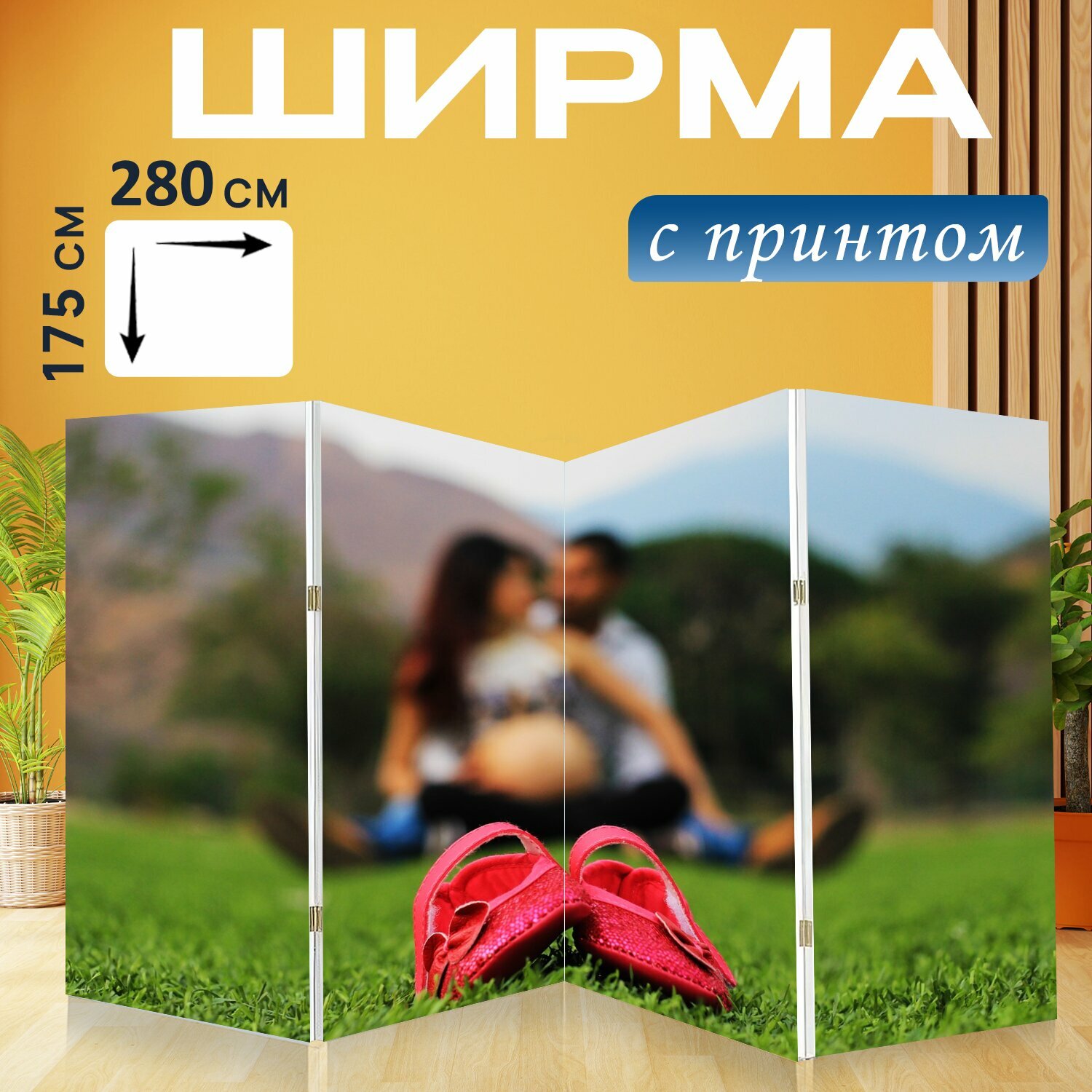 10 цен на Ширма "Беременность, семья, беременная" перегородка для зонирования комнаты с принтом 280x175 см. на холсте