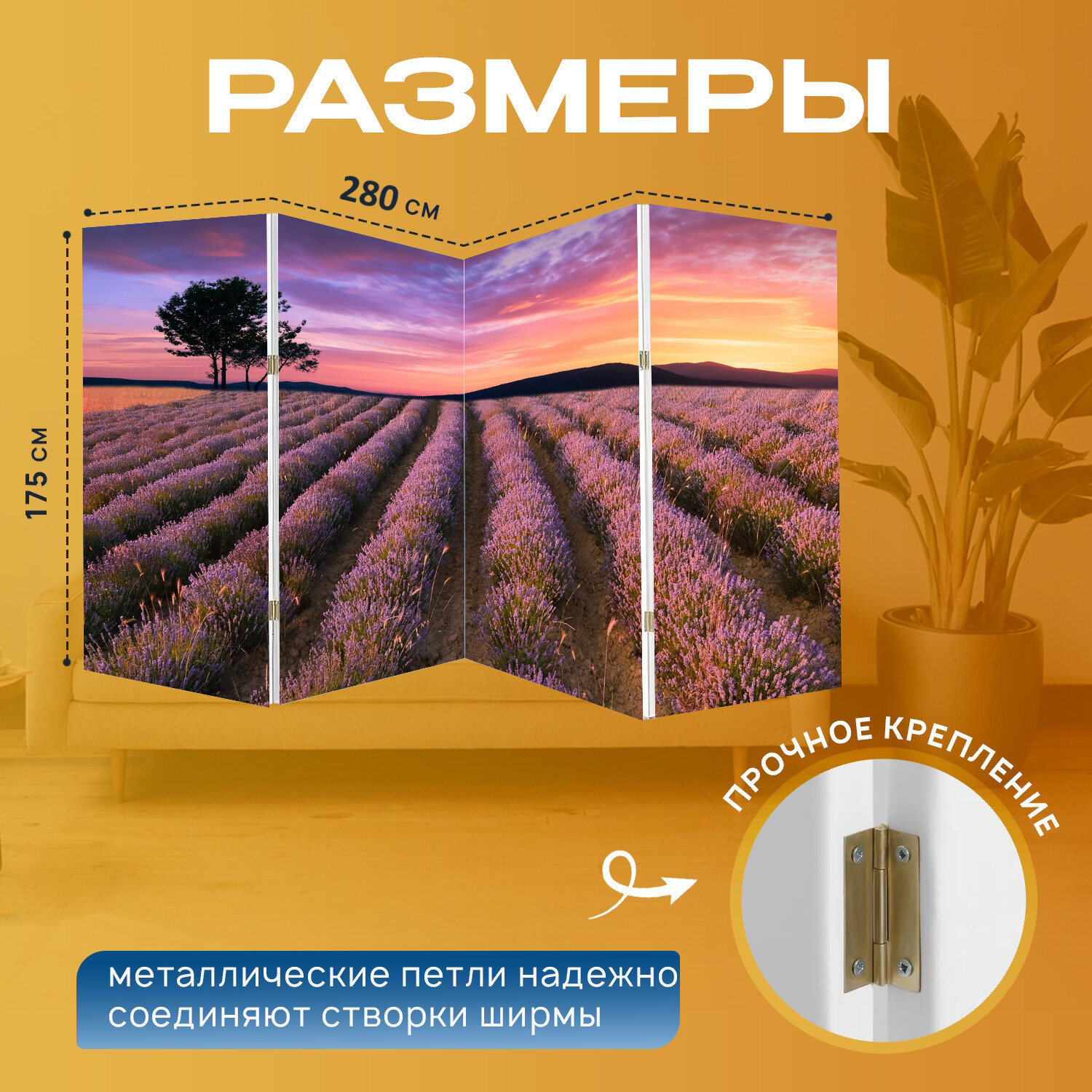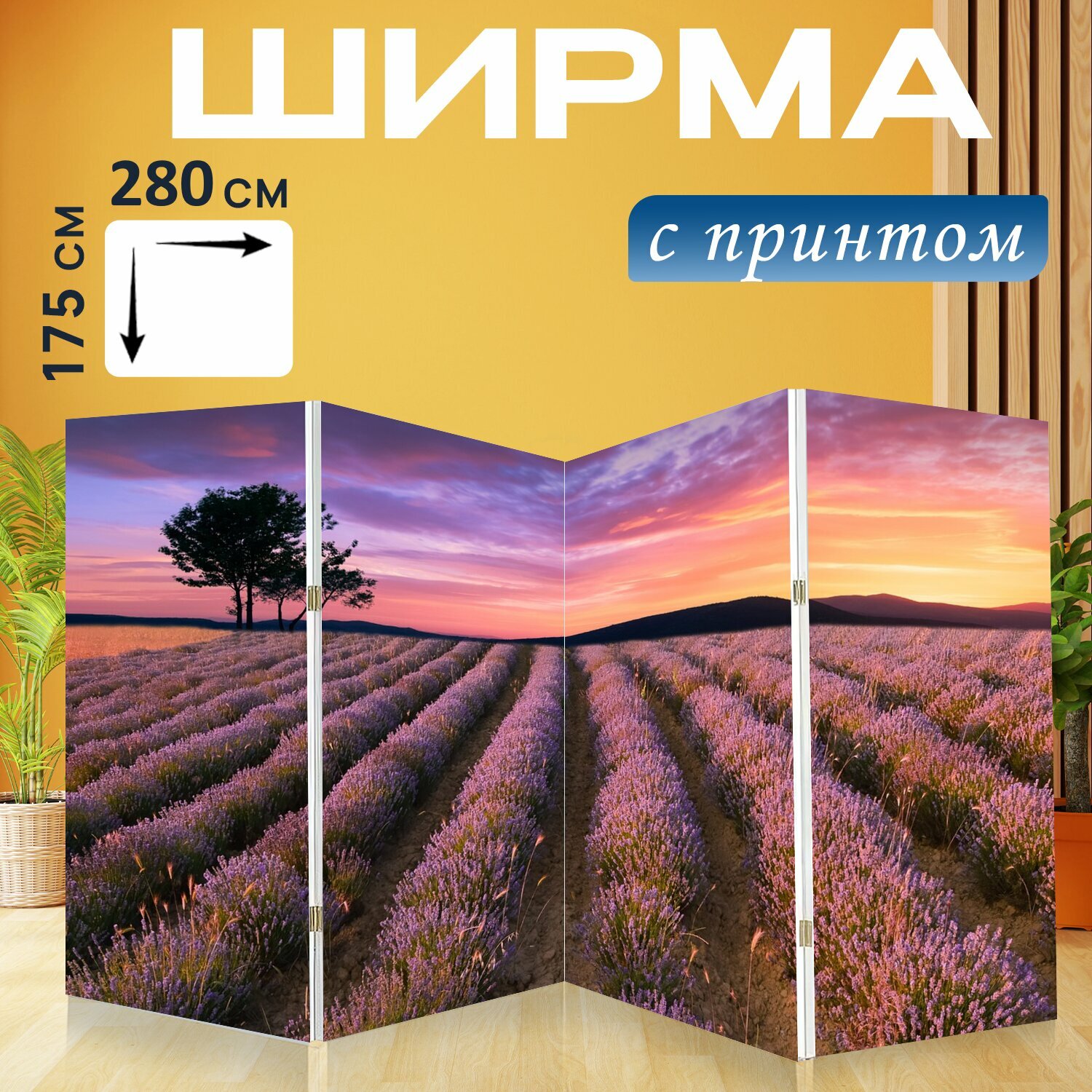 Ширма "Летом, лаванда, дерево" перегородка для зонирования комнаты с принтом 280x175 см. на холсте информация: