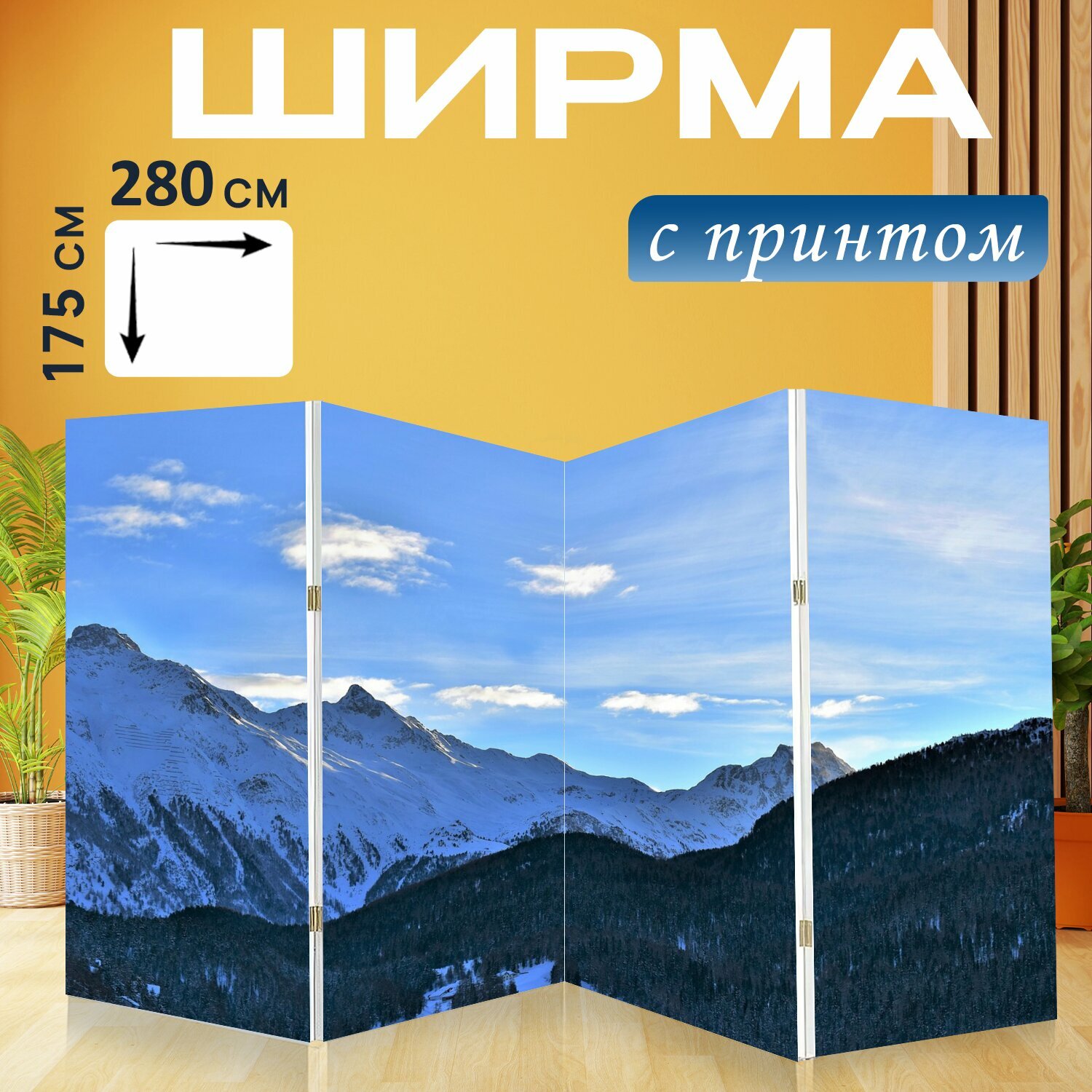 10 цен на Ширма "Зима, горы, лыжная зона" перегородка для зонирования комнаты с принтом 280x175 см. на холсте