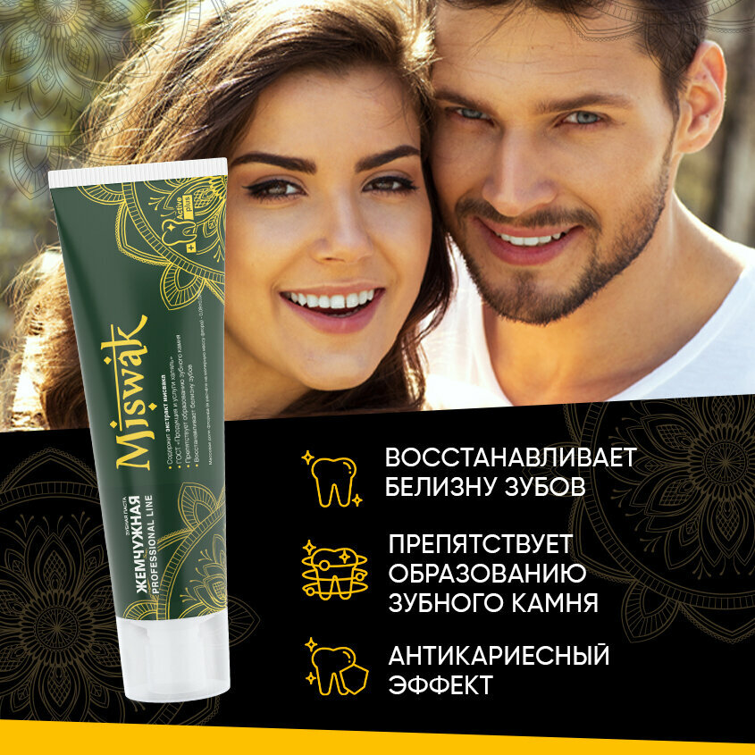 Зубная паста Жемчужная Professional Мисвак Miswak для удаление зубного налета, защита от кариеса 100мл информация: