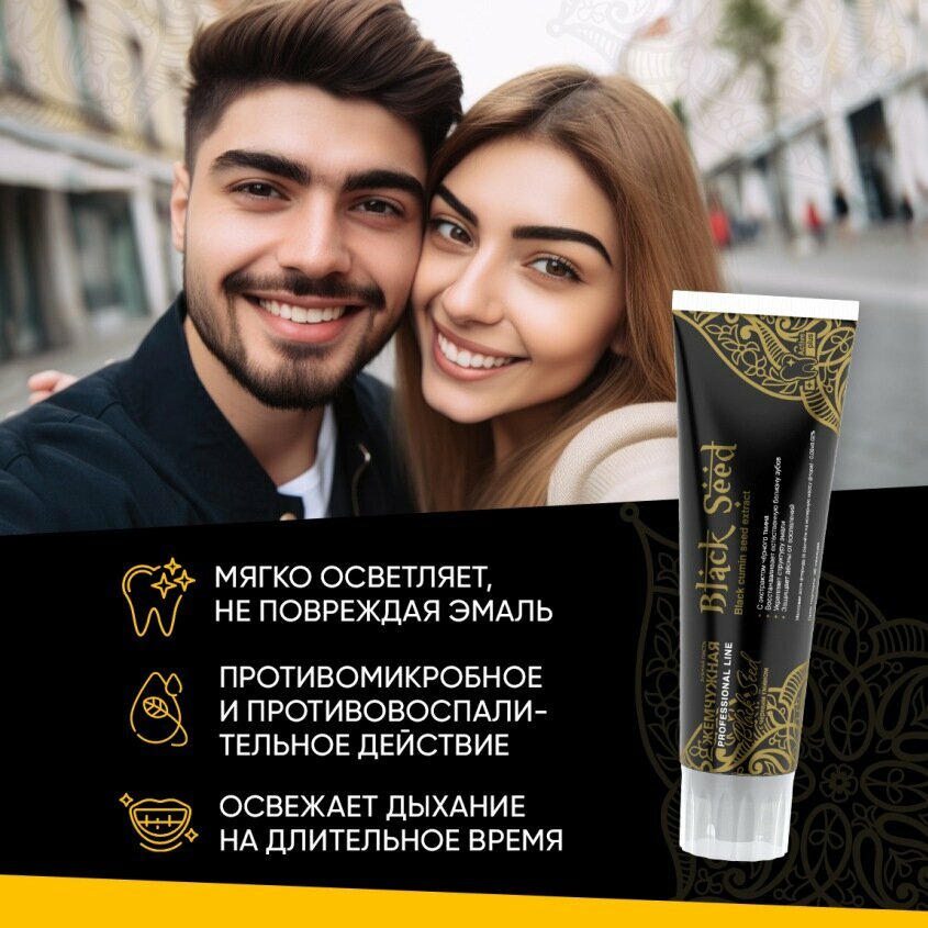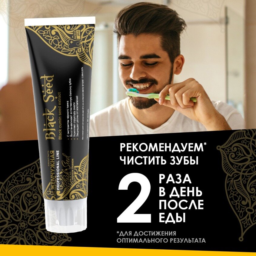 Зубная паста Жемчужная Professional Black Seed отбеливающая с экстрактом тмина и имбиря 100 мл информация: