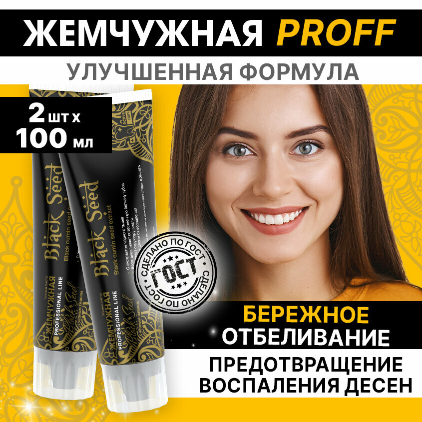 Зубная паста Жемчужная Professional Black Seed отбеливающая с экстрактом тмина и имбиря 2 штуки по 100 мл информация: