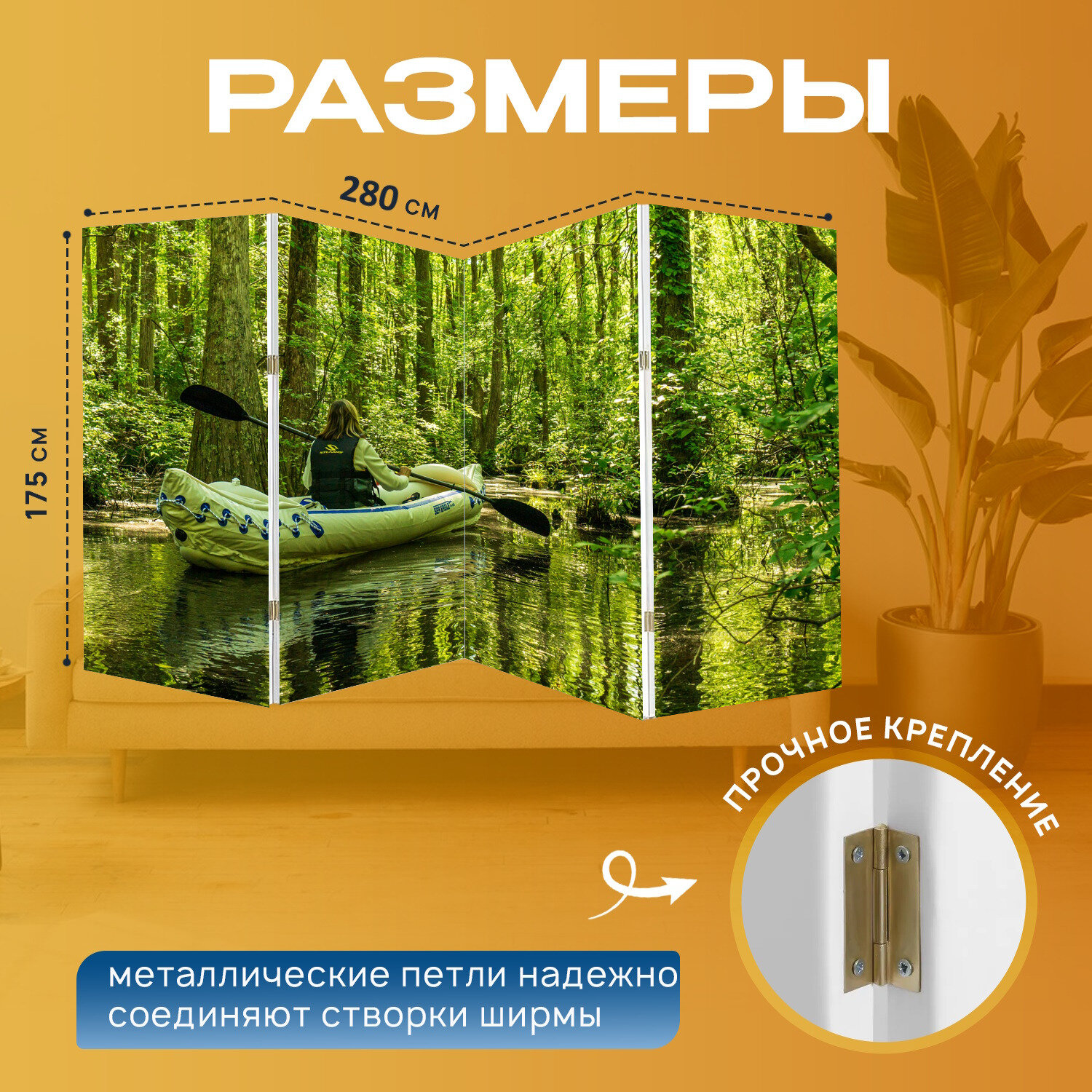 Ширма "Каяк след, кипарис пруд, сайпресс болото" перегородка для зонирования комнаты с принтом 280x175 см. на холсте информация:
