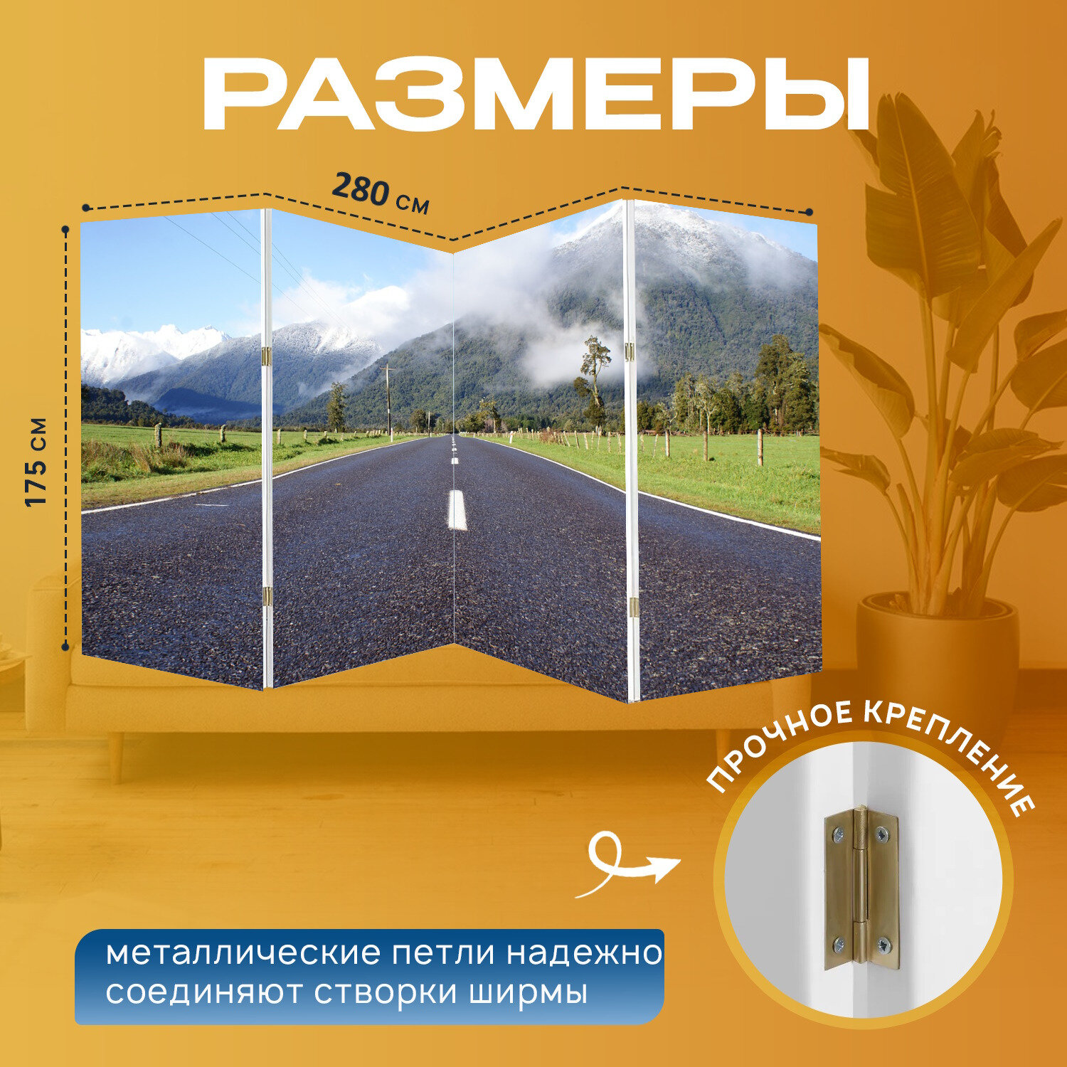 Ширма "Шоссе, асфальт, природа" перегородка для зонирования комнаты с принтом 280x175 см. на холсте информация: