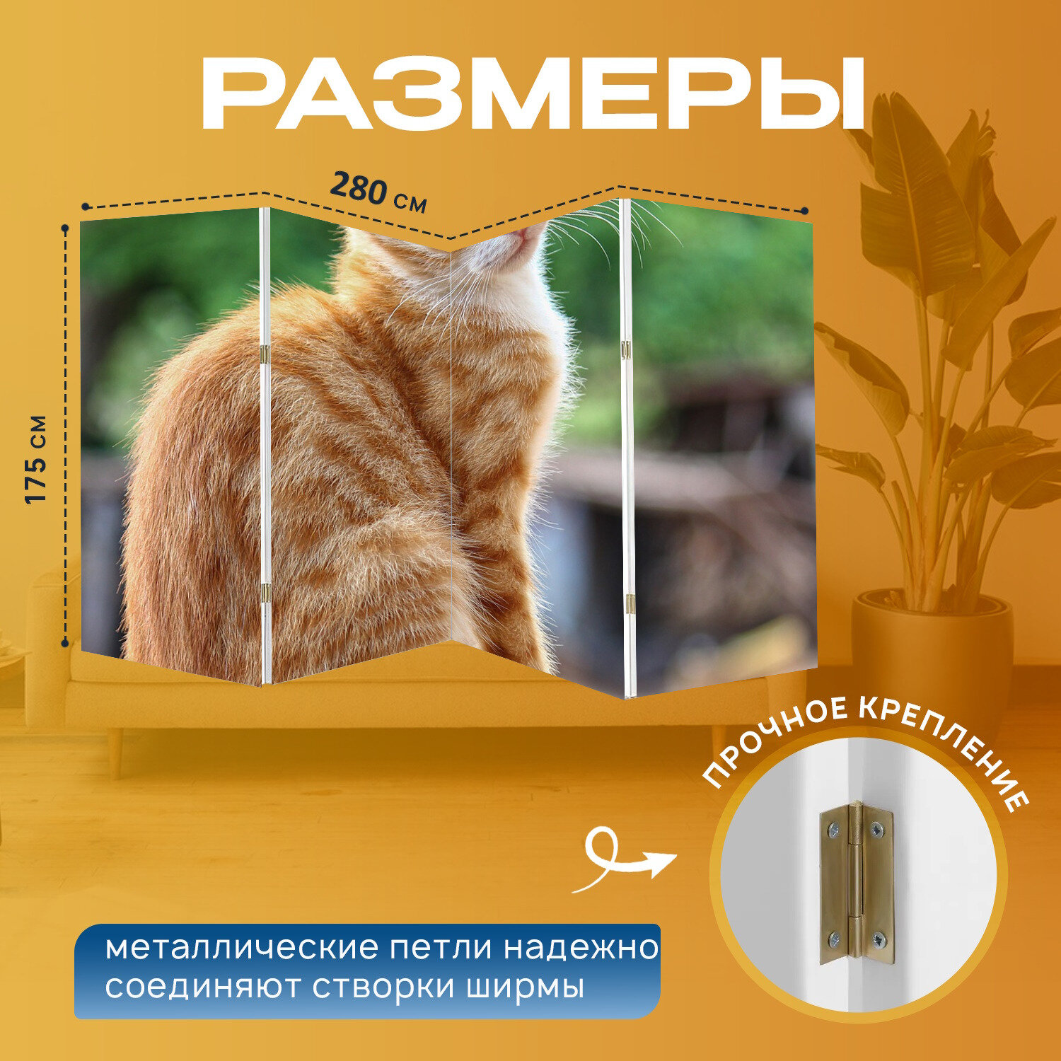 Ширма "Кошка, котенок, полосатый" перегородка для зонирования комнаты с принтом 280x175 см. на холсте информация: