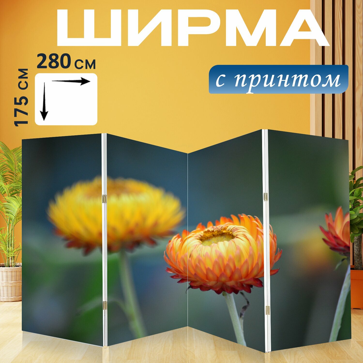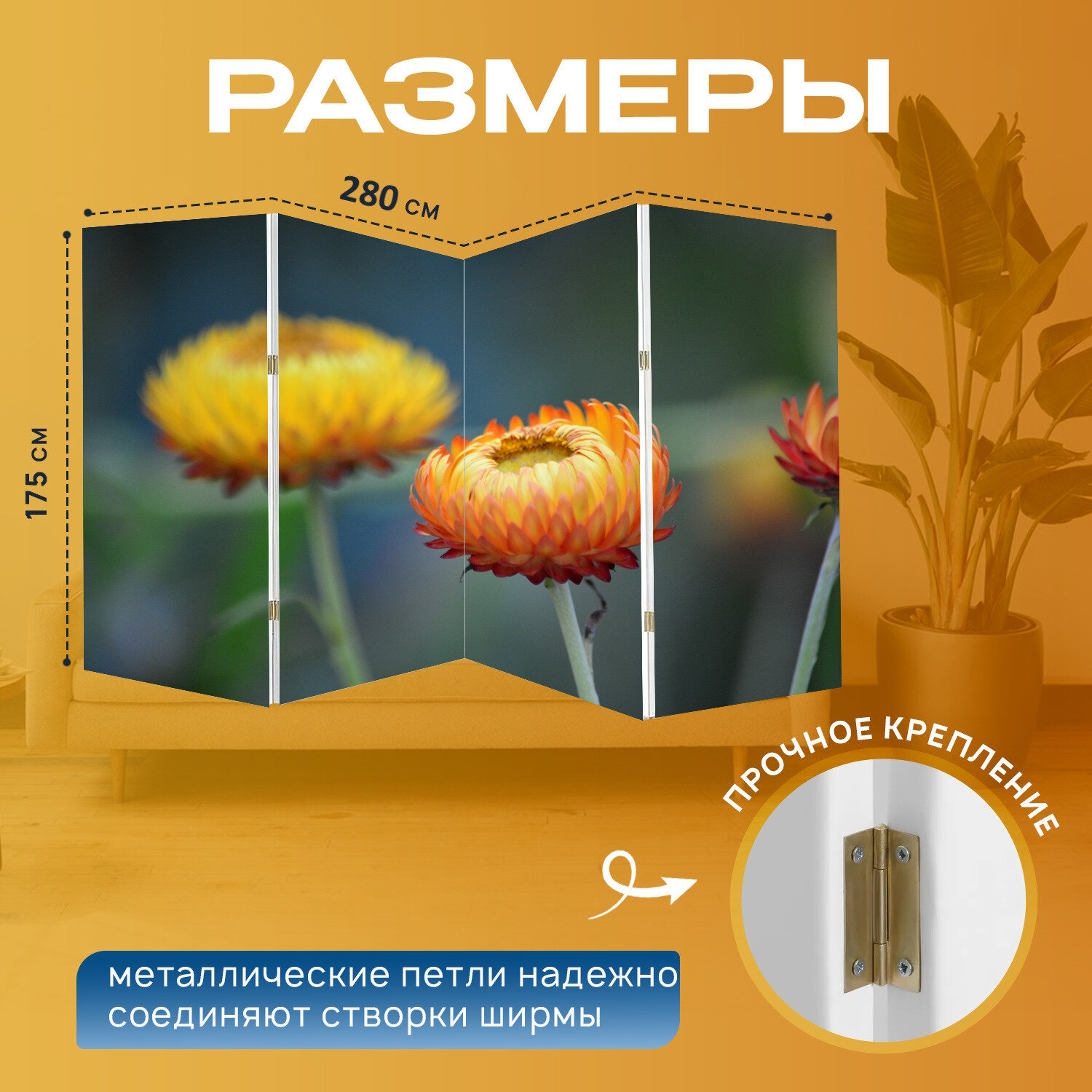 Ширма "Цветы, лепестки, корень" перегородка для зонирования комнаты с принтом 280x175 см. на холсте информация: