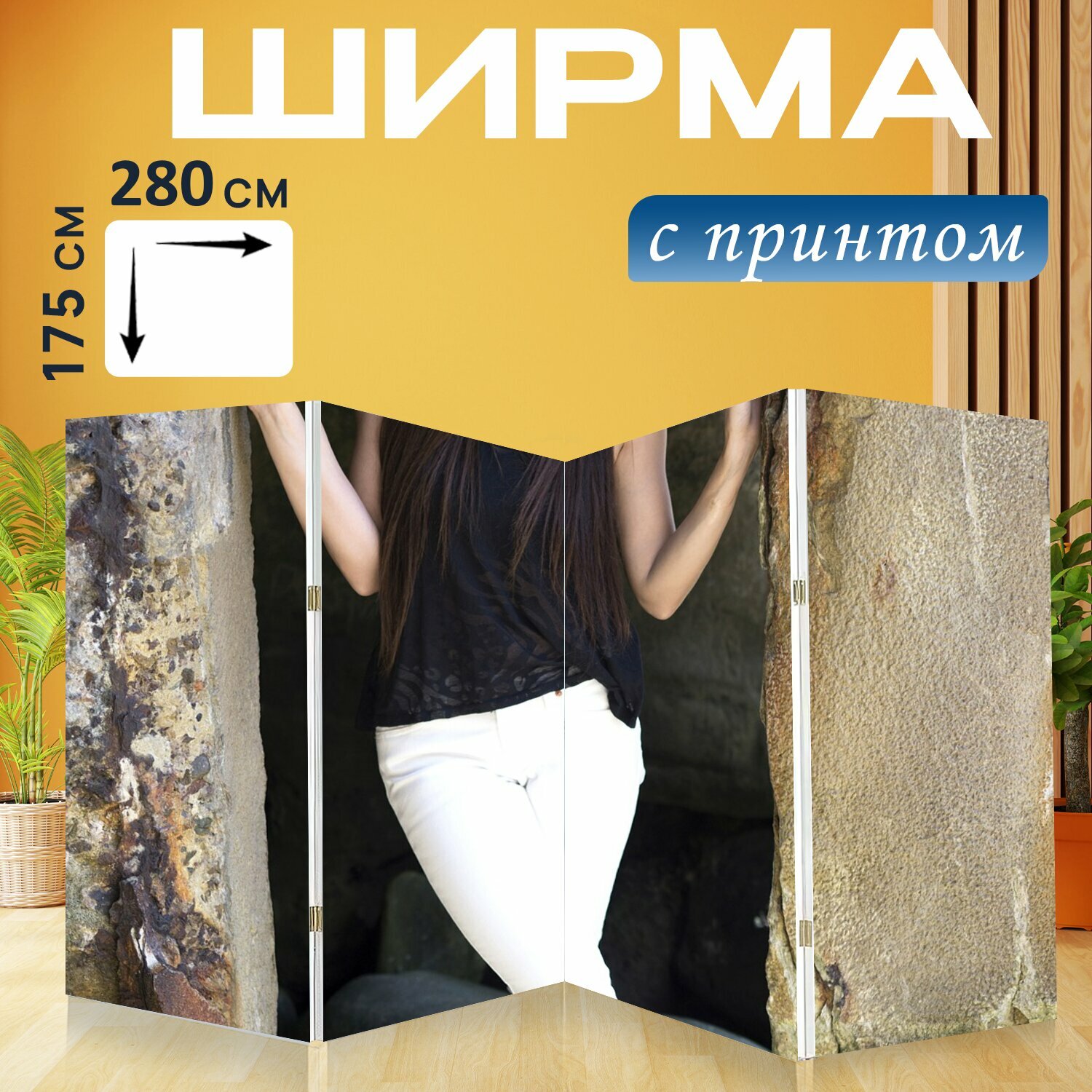 10 цен на Ширма "Модель, женщина, мода" перегородка для зонирования комнаты с принтом 280x175 см. на холсте