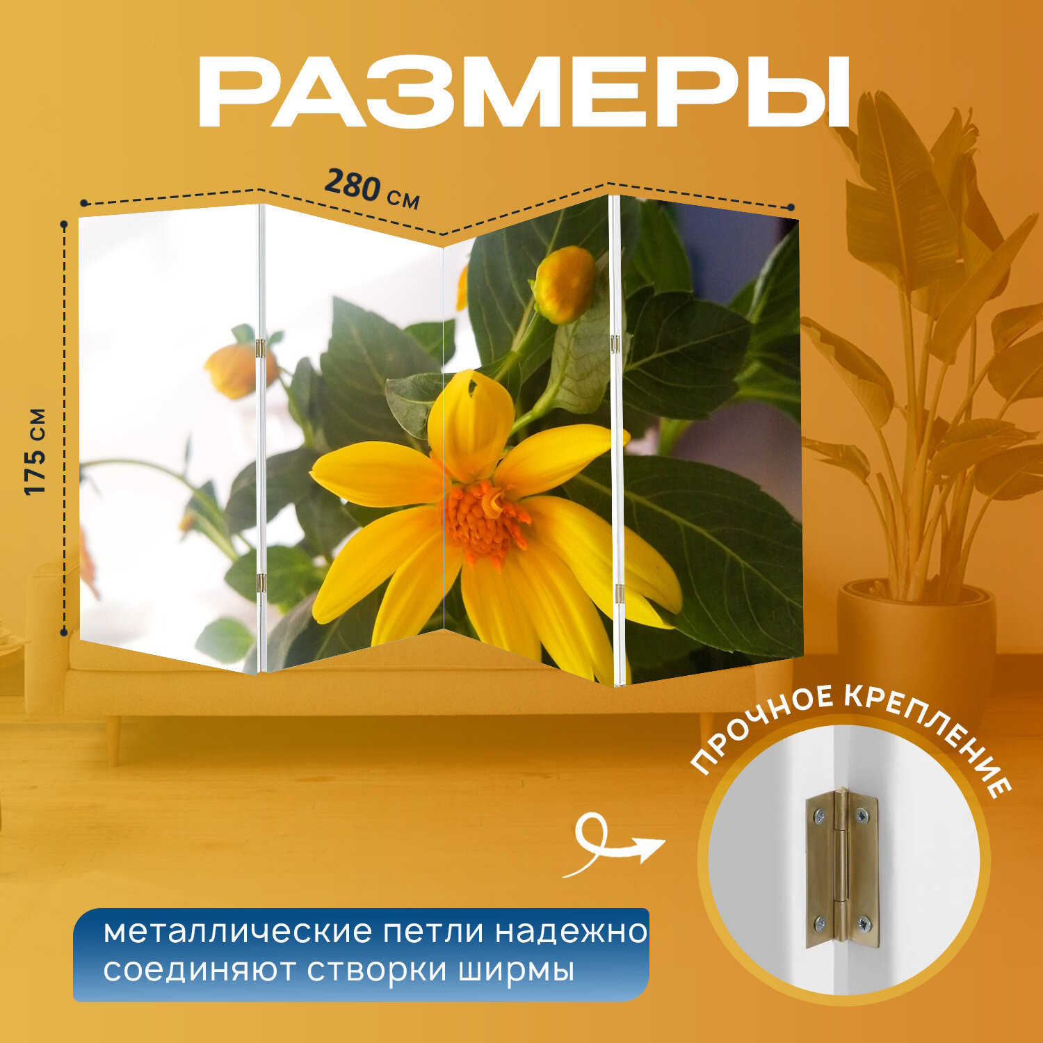 Отзывы на Ширма "Желтые цветы, цветы, природа" перегородка для зонирования комнаты с принтом 280x175 см. на холсте