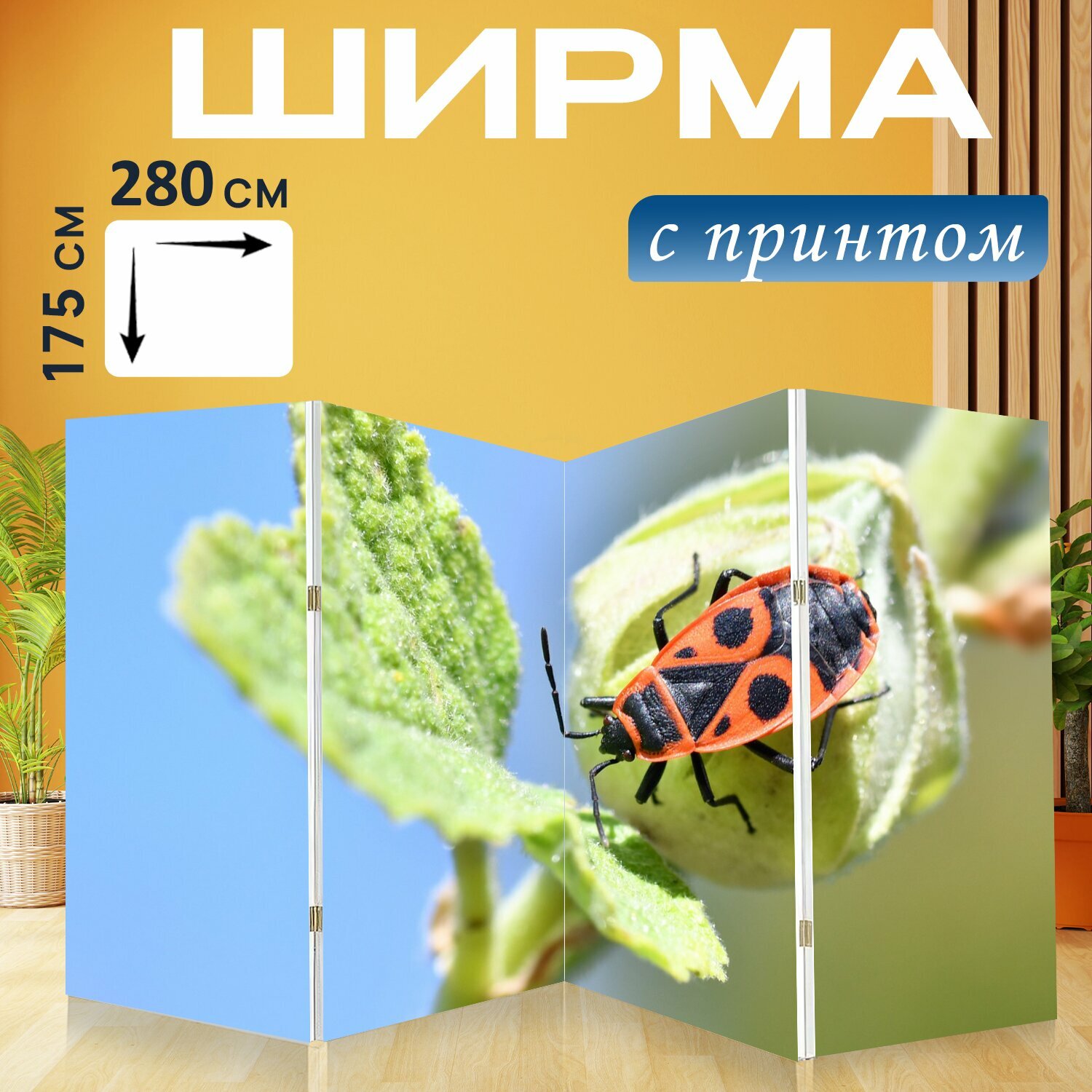 Ширма "Завод, насекомое, поджигатель" перегородка для зонирования комнаты с принтом 280x175 см. на холсте информация: