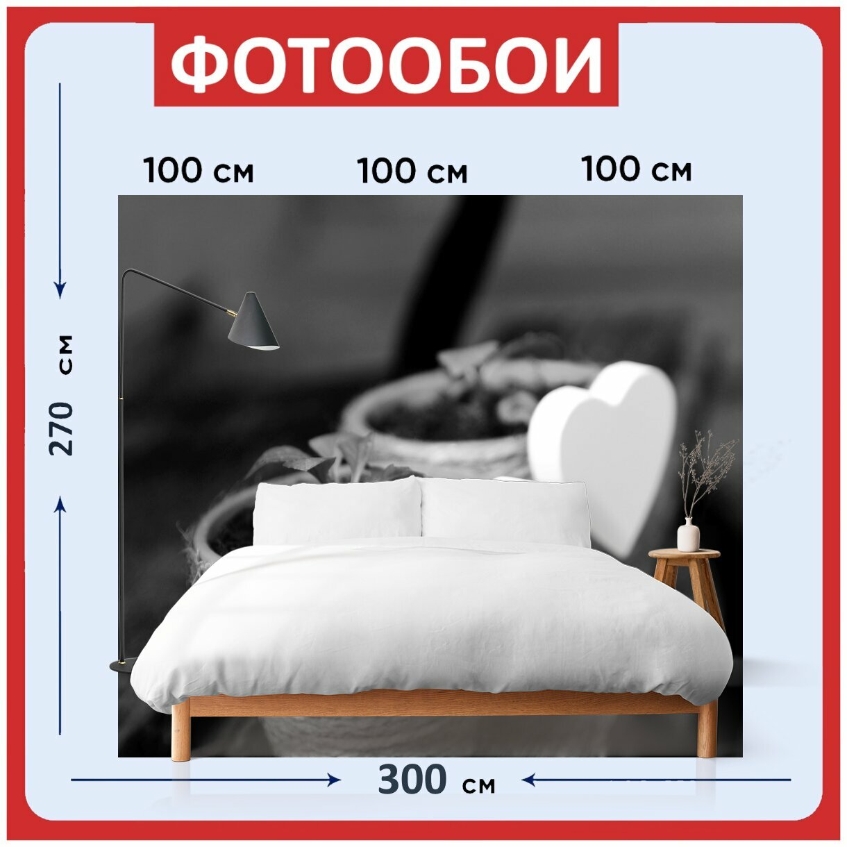 10 цен на Фотообои ударопрочные моющиеся "Сердце, белое сердце, горшок для растений" 300x270 см. флизелиновые на стену