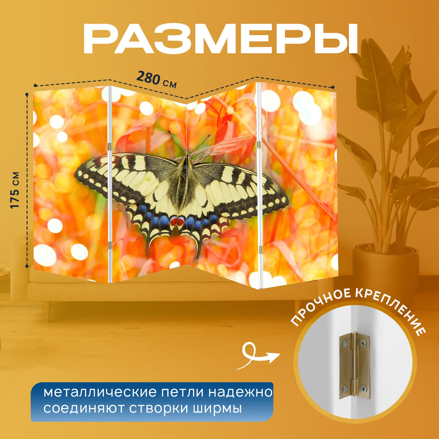 Ширма "Ласточкин хвост, бабочка, насекомое" перегородка для зонирования комнаты с принтом 280x175 см. на холсте информация: