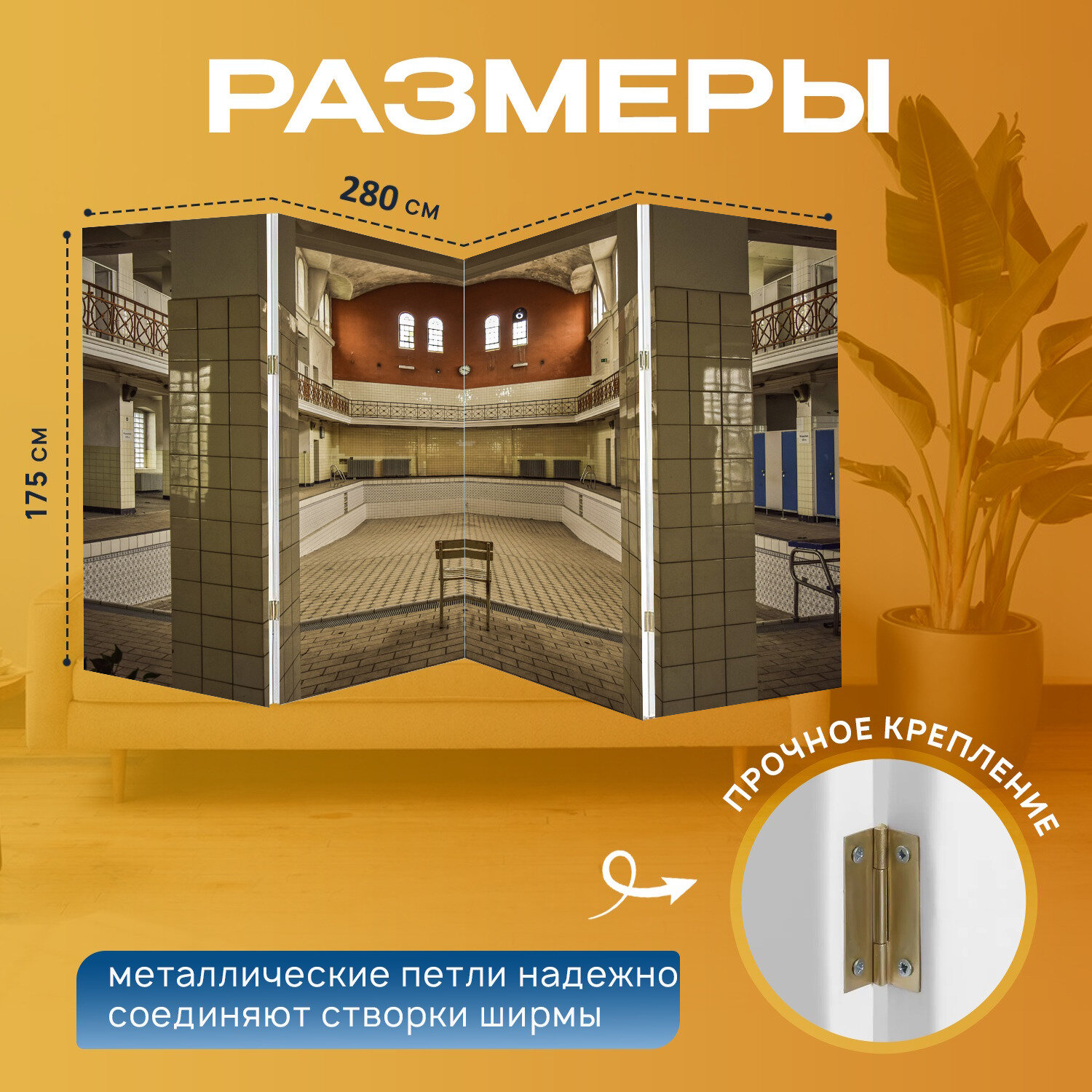 Ширма "Потерянные места, бассейн, старый" перегородка для зонирования комнаты с принтом 280x175 см. на холсте информация: