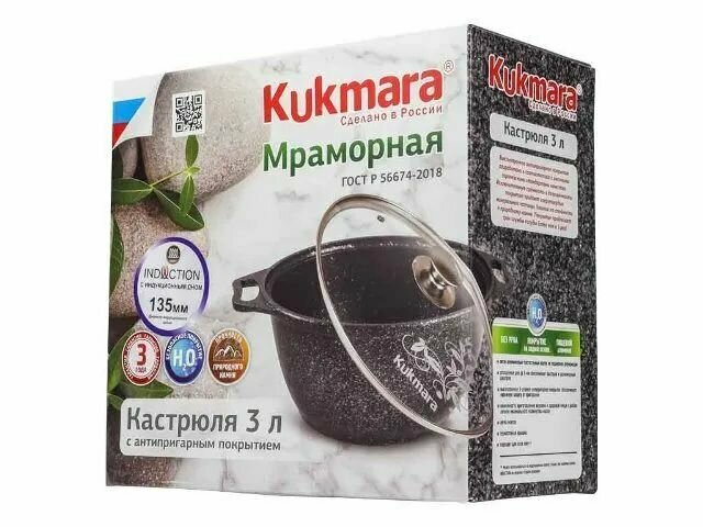 Отзывы на Кастрюля Kukmara "Marble Induction" 3 л с антипригарным покрытием, со стеклянной крышкой, индукционная