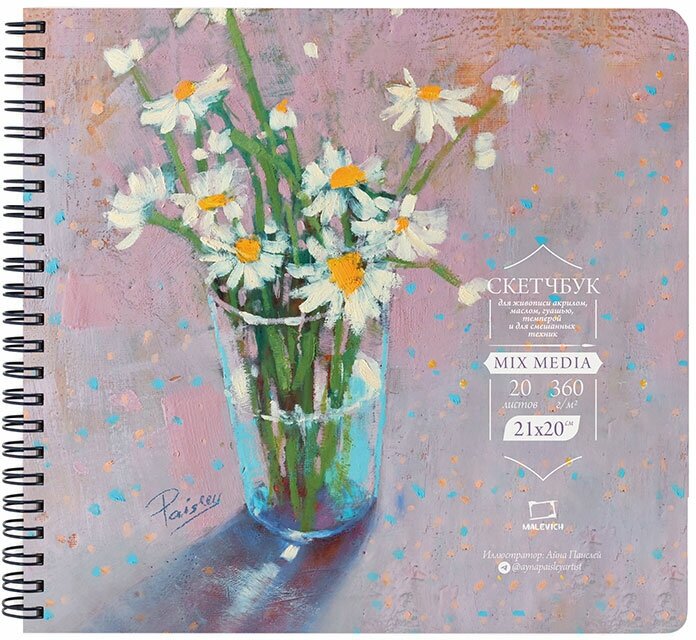 10 цен на Скетчбук Малевичъ MIX MEDIA для акрила, гуаши и смешанных техник, 360 г/м, 21х20 см, 20л