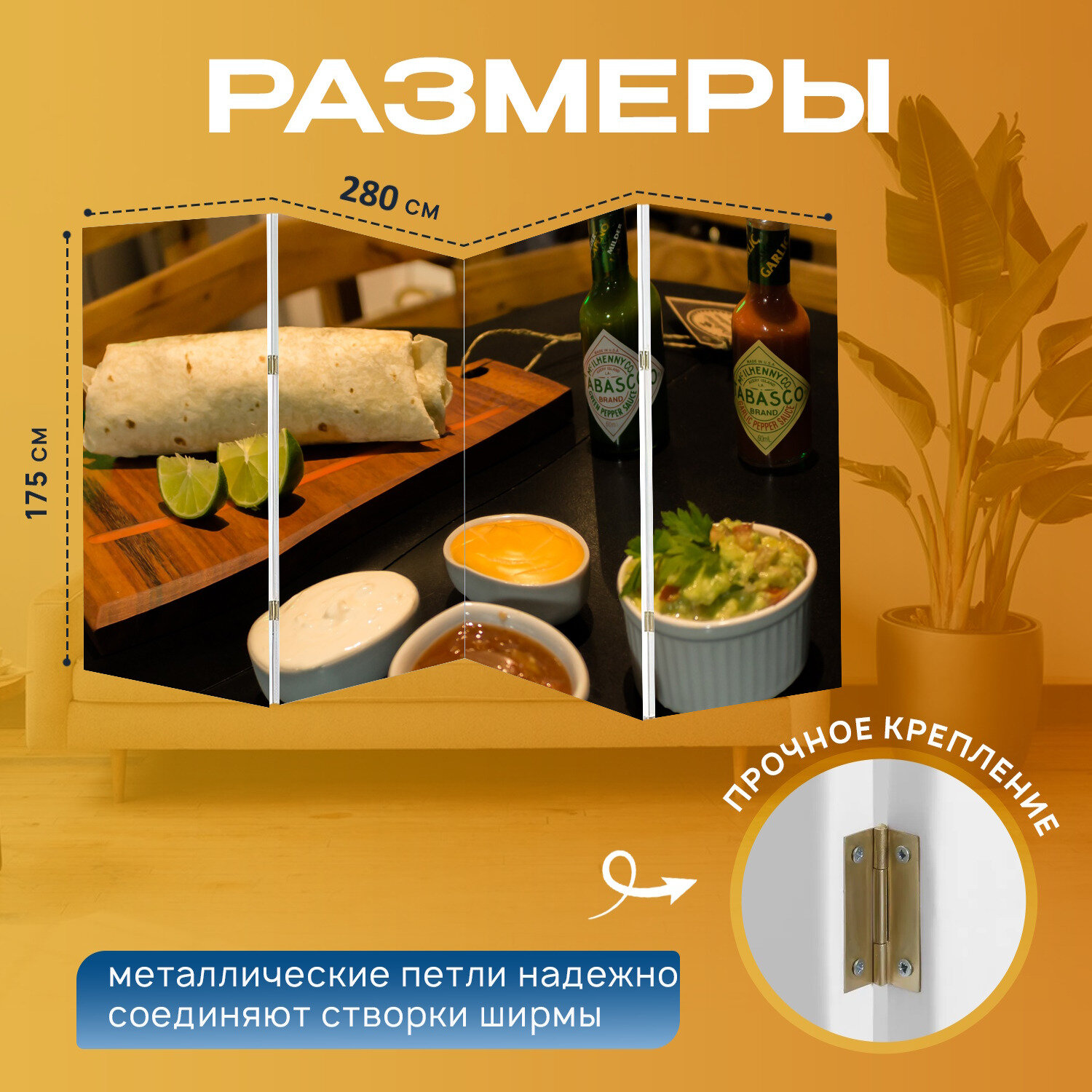 Ширма "Мексиканские продовольствия, гастрономия, питание" перегородка для зонирования комнаты с принтом 280x175 см. на холсте информация: