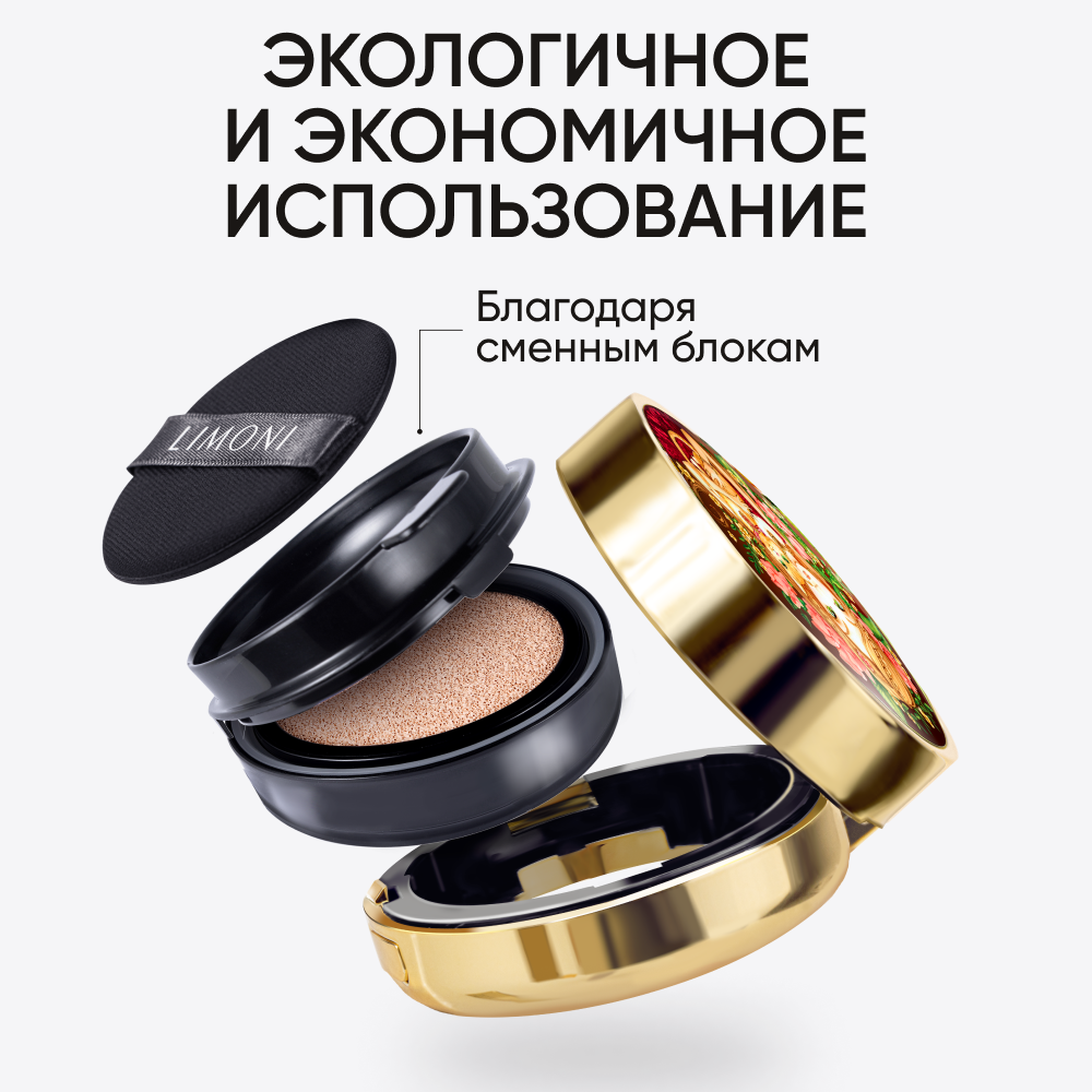 Тональный флюид кушон Limoni All Stay Cover Cushion SPF 35 / PA++ Animal Princess тон 03 Dark Medium информация: