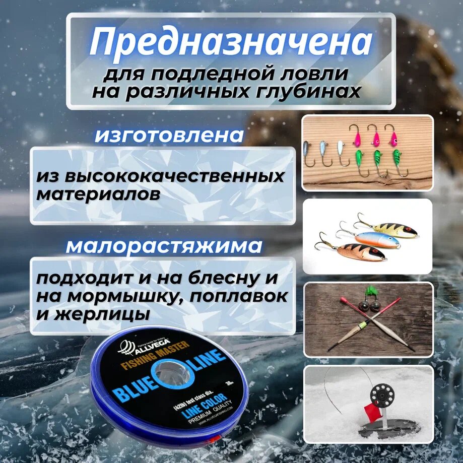 Леска монофильная ALLVEGA "Fishing Master" 30м 0,117мм (1,65кг) голубая 243 ₽