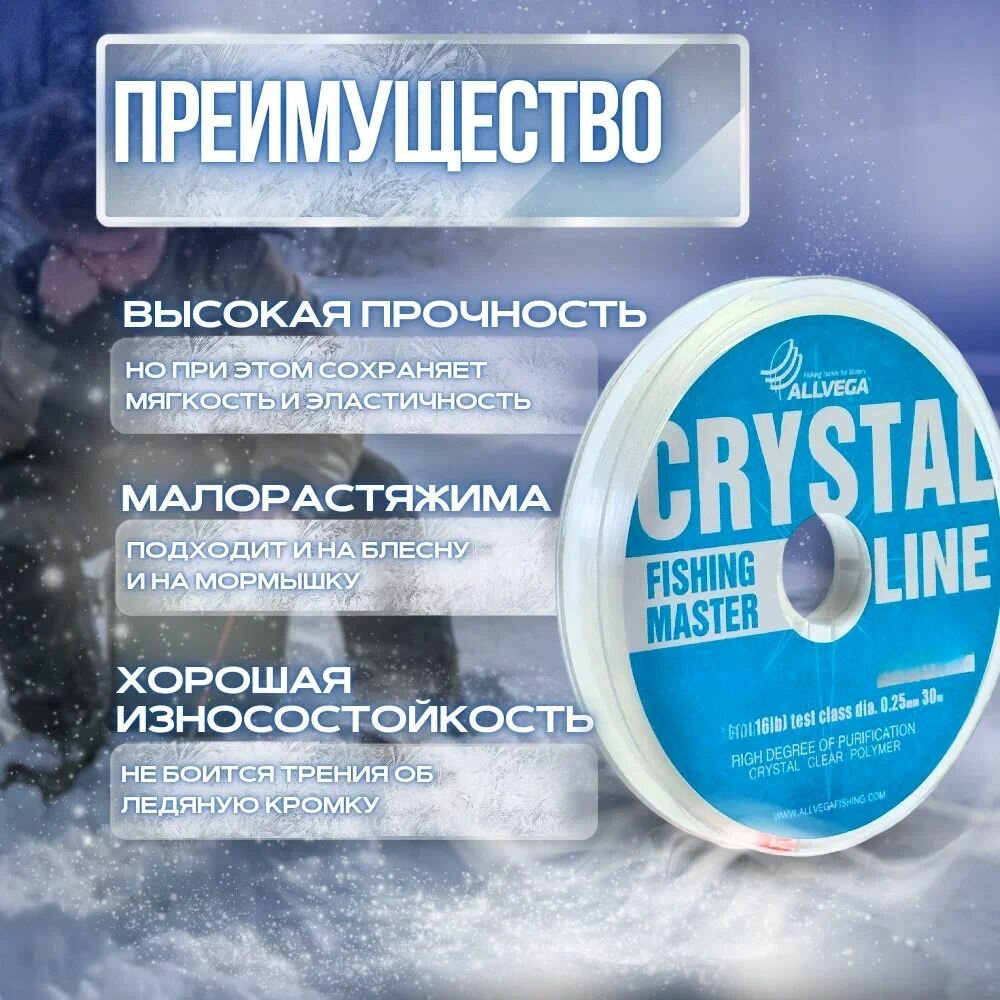 Леска монофильная ALLVEGA "Fishing Master" CRYSTAL 30м 0,08мм (0,87кг) информация:
