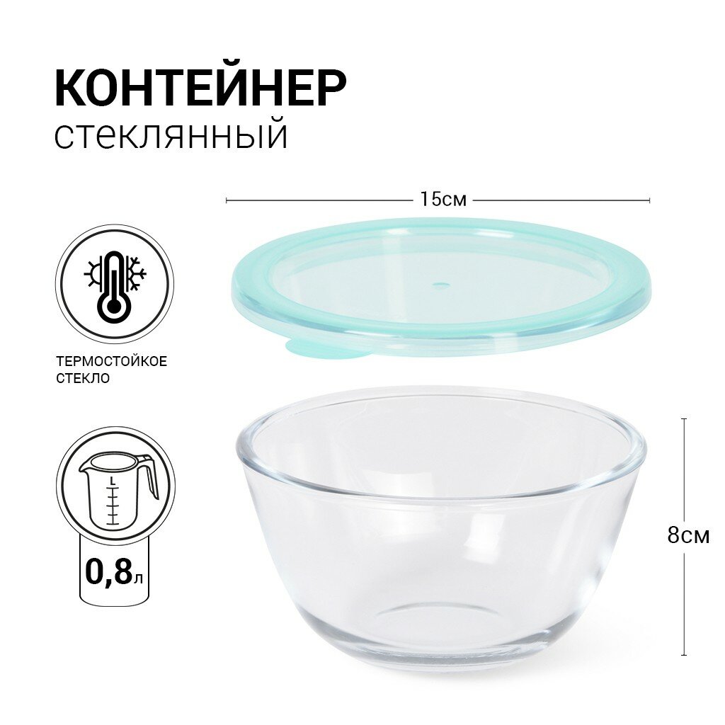 Миска с крышкой 15 см / 0,8 л стекло информация: