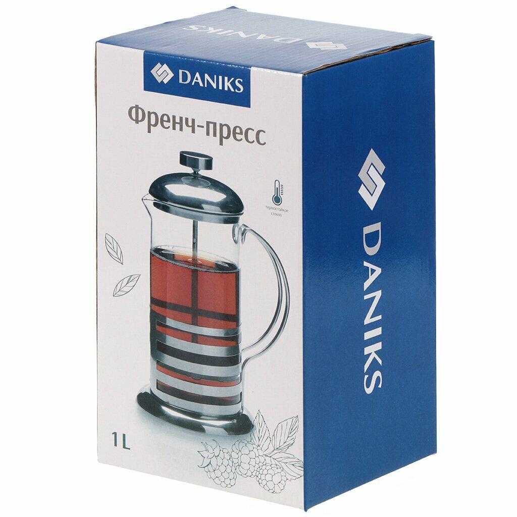 Френч-пресс Daniks 1 л, стекло и сталь, для чая и кофе информация: