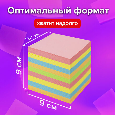 Блок для записей BRAUBERG в подставке прозрачной, куб 9х9х9 см, цветной, 122225, 122225 653 ₽