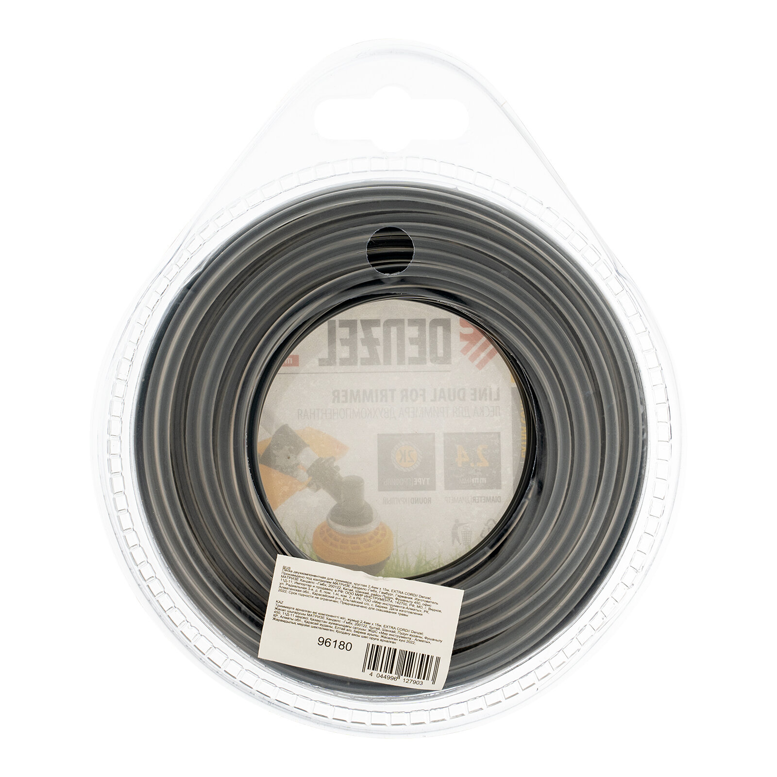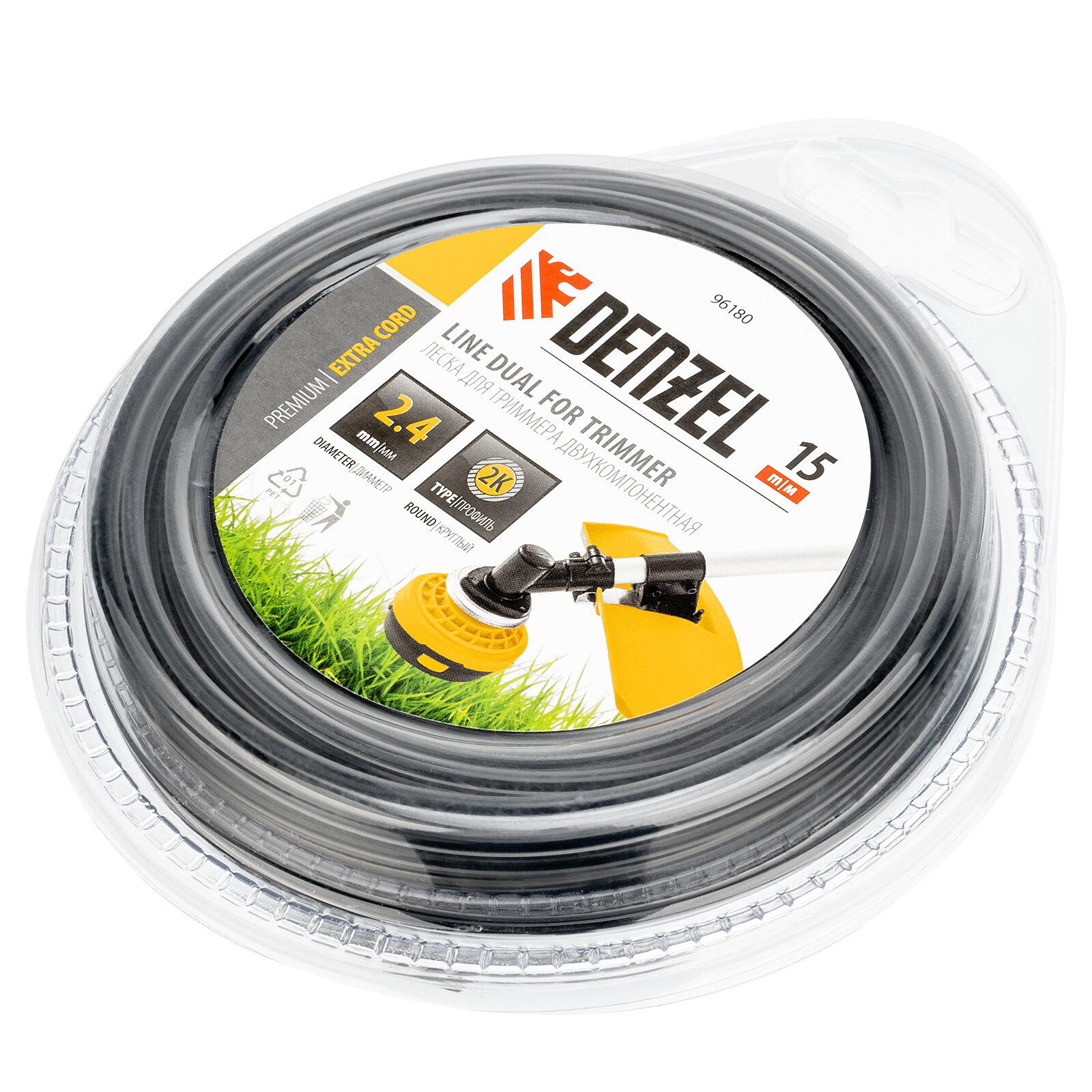 DENZEL 96180 Леска двухкомпонентная для триммера, круглая 2,4 мм x15 м, ExTRA CORD DENZEL Denzel 96180