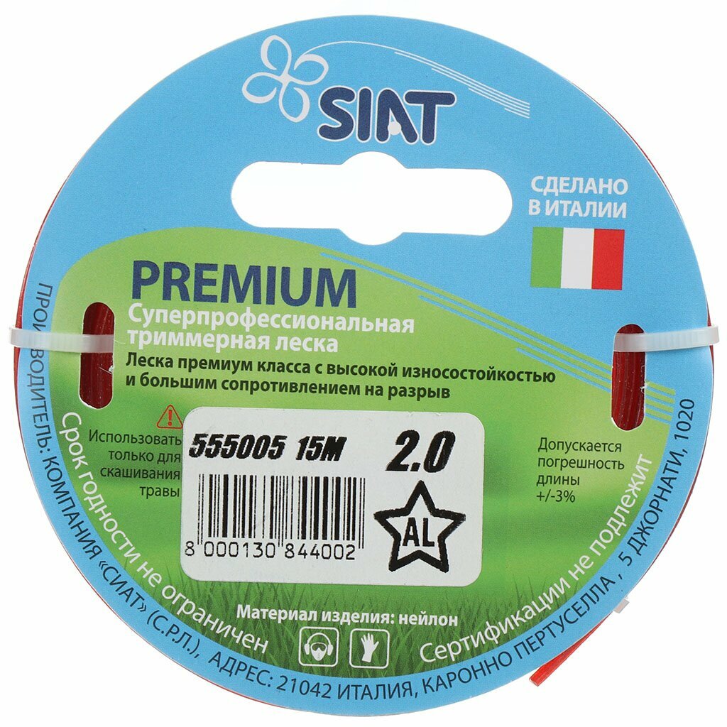 Леска SIAT PREMIUM для триммеров 2.0х15м, звезда, с алюминиевой стружкой (-70% к износу)