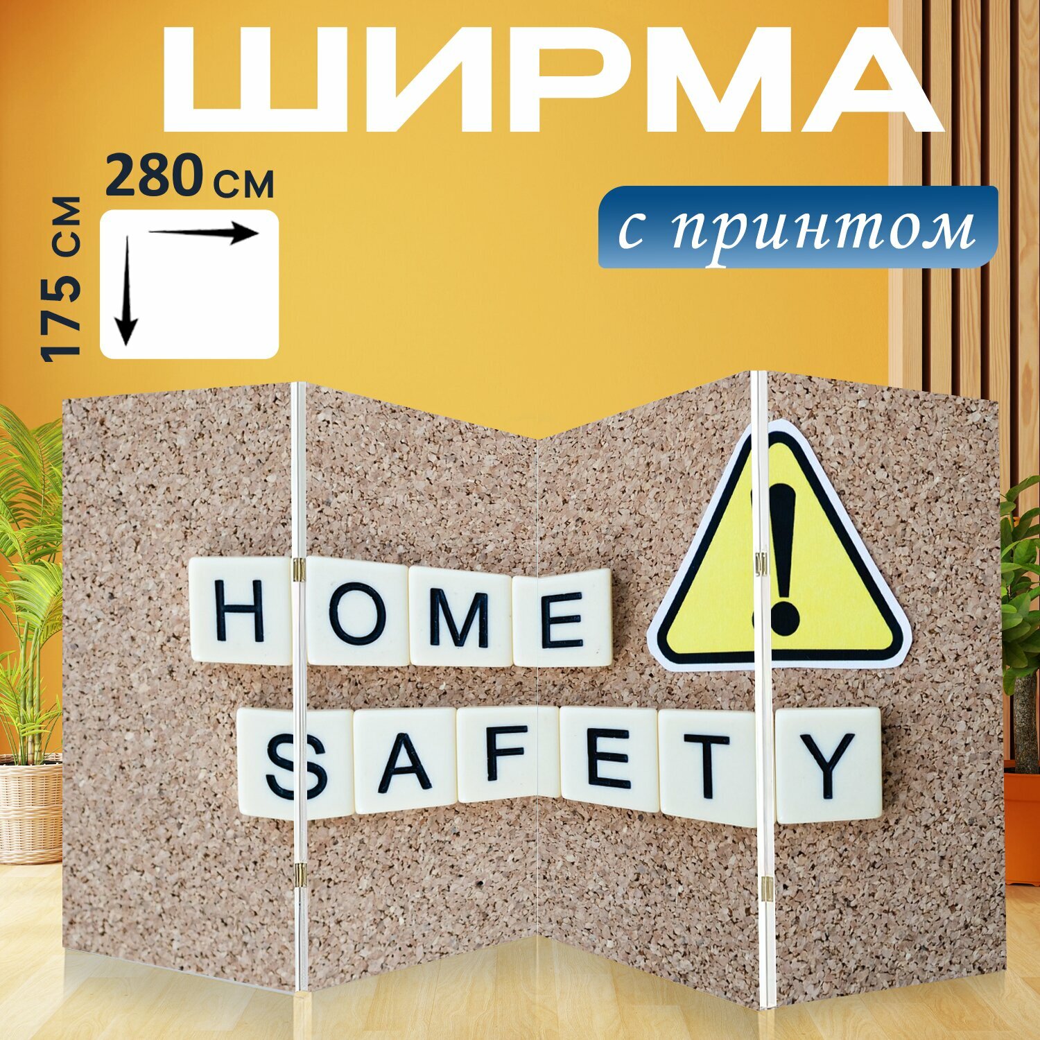 Ширма "Безопасность дома, домашняя безопасность, безопасно" перегородка для зонирования комнаты с принтом 280x175 см. на холсте информация: