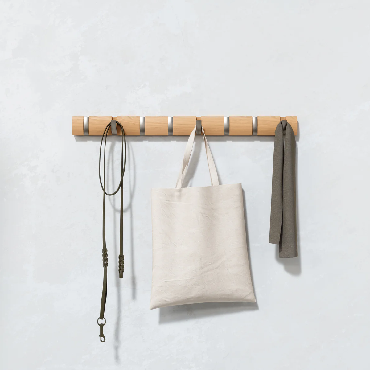 Вешалка настенная горизонтальная Umbra Flip 8 крючков, натуральное дерево