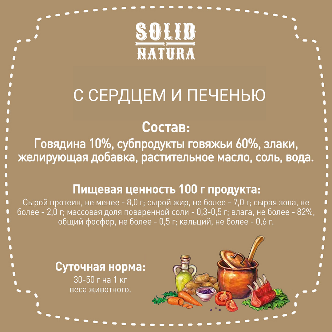 Влажный корм для собак Solid Natura Сердце и печень упаковка 6 шт х 340 г информация: