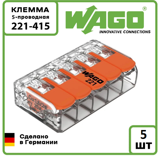 Клемма 5-и проводная Wago 221-415, в комплекте 5 шт информация: