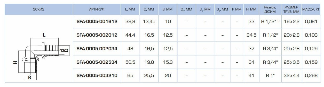 Угольник 90° STOUT SFA-0005-002034 20x3/4" аксиальное - резьба информация: