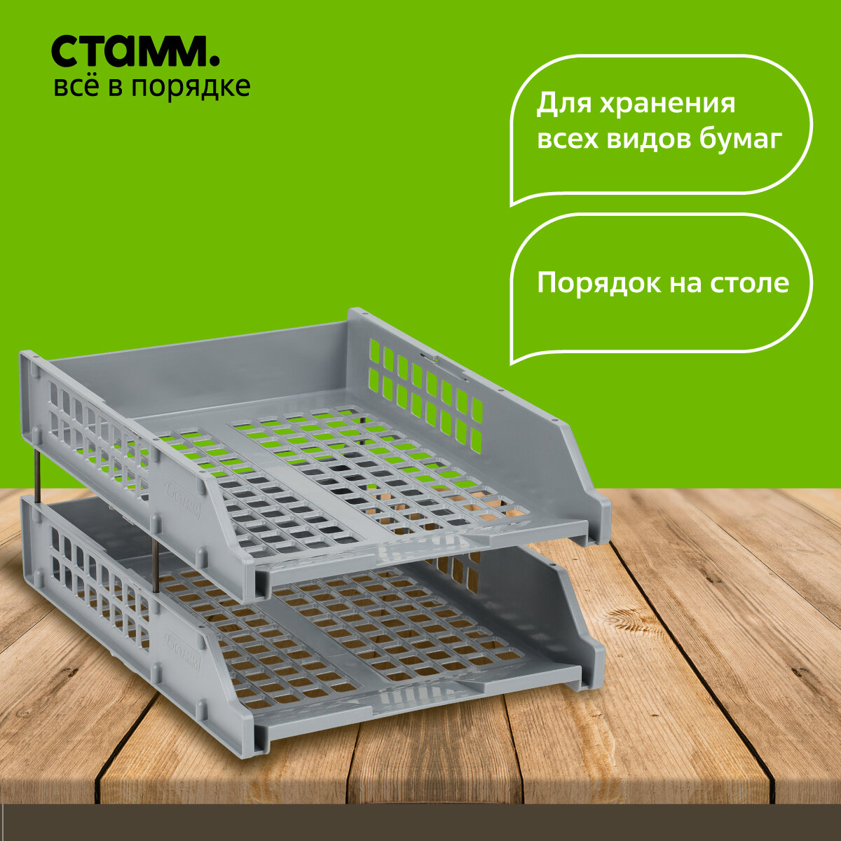 10 цен на Набор лотков горизонтальных для бумаги СТАММ Strong (2 отд.) серый шт. 1 шт.