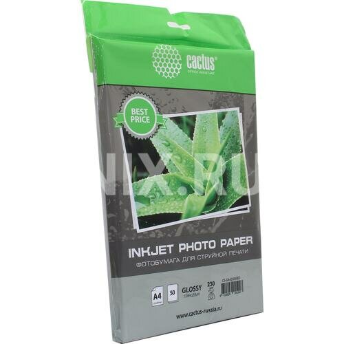 10 цен на Фотобумага Cactus CS-GA423050ED формат A4, плотность 230г/м2, 50 листов, односторонняя, покрытие глянцевое, для струйной печати, белый