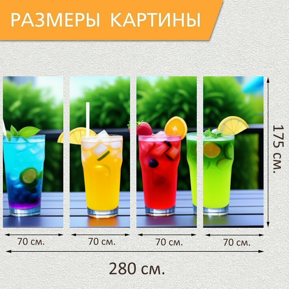 Модульная картина на холсте в кафе "Разноцветные напитки на летней террасе , " триптих на подрамнике 280х175 см. для интерьера информация: