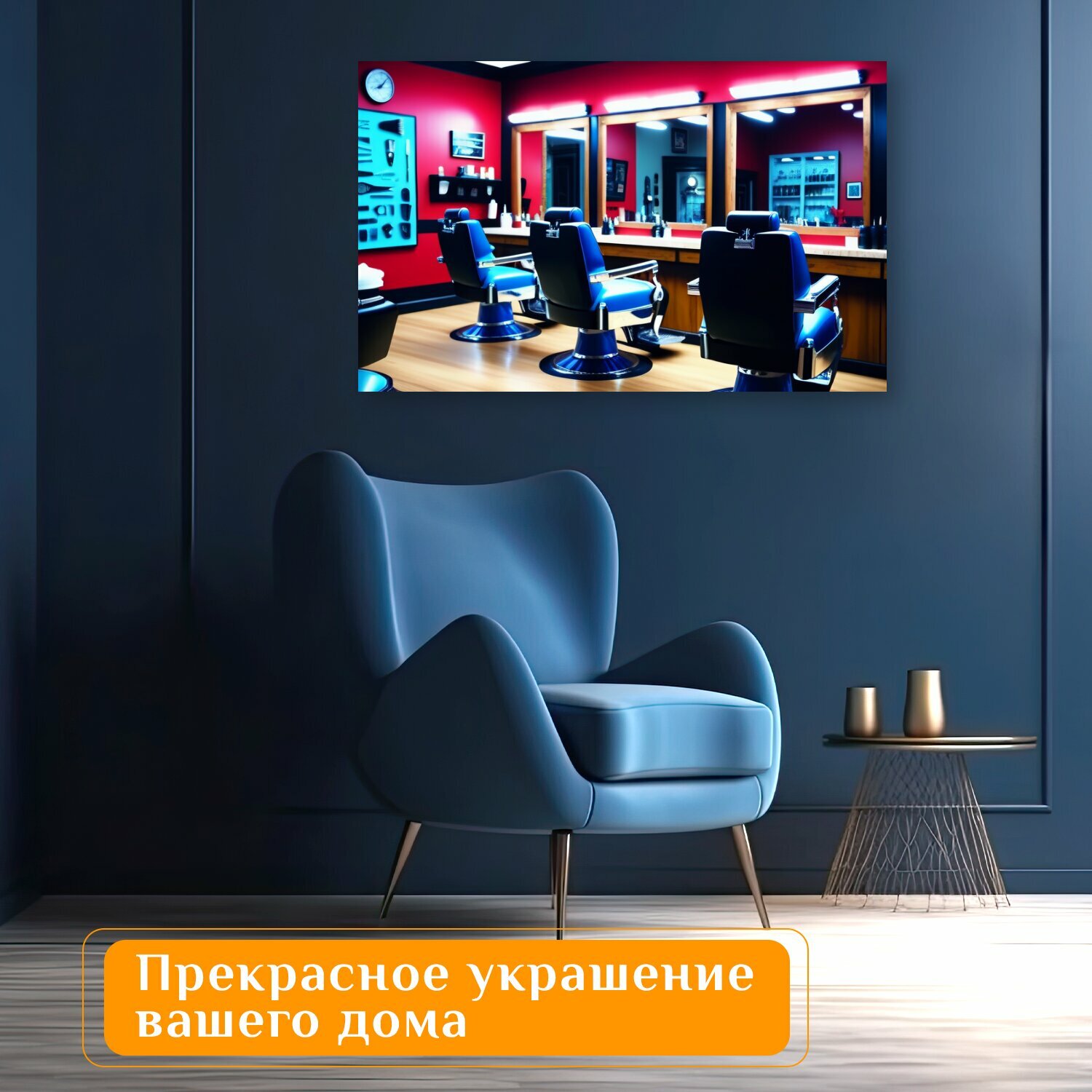 Отзывы на Картина на холсте в парикмахерскую "Прогулка по барбершопу , " на подрамнике 120х75 см. для интерьера