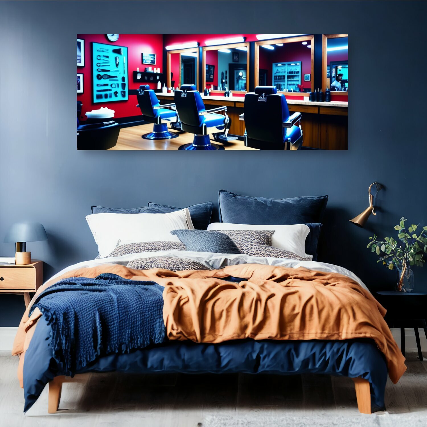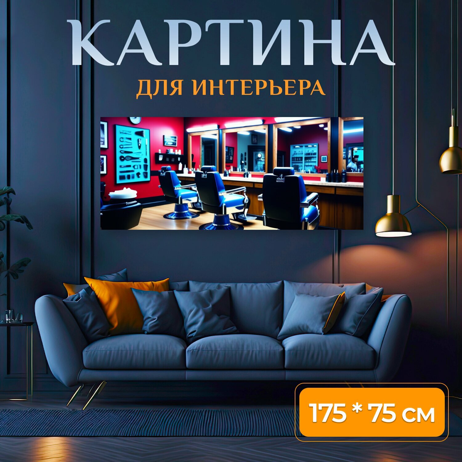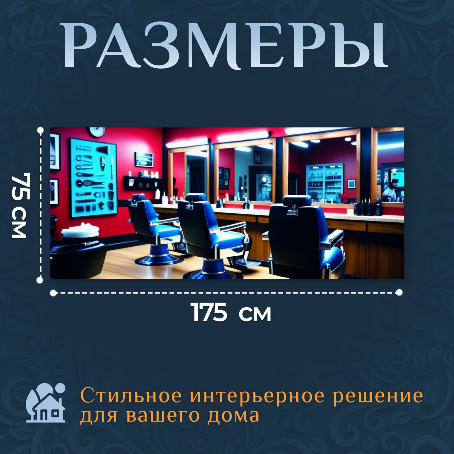 10 цен на Картина на холсте в парикмахерскую "Прогулка по барбершопу , " на подрамнике 175х75 см. для интерьера