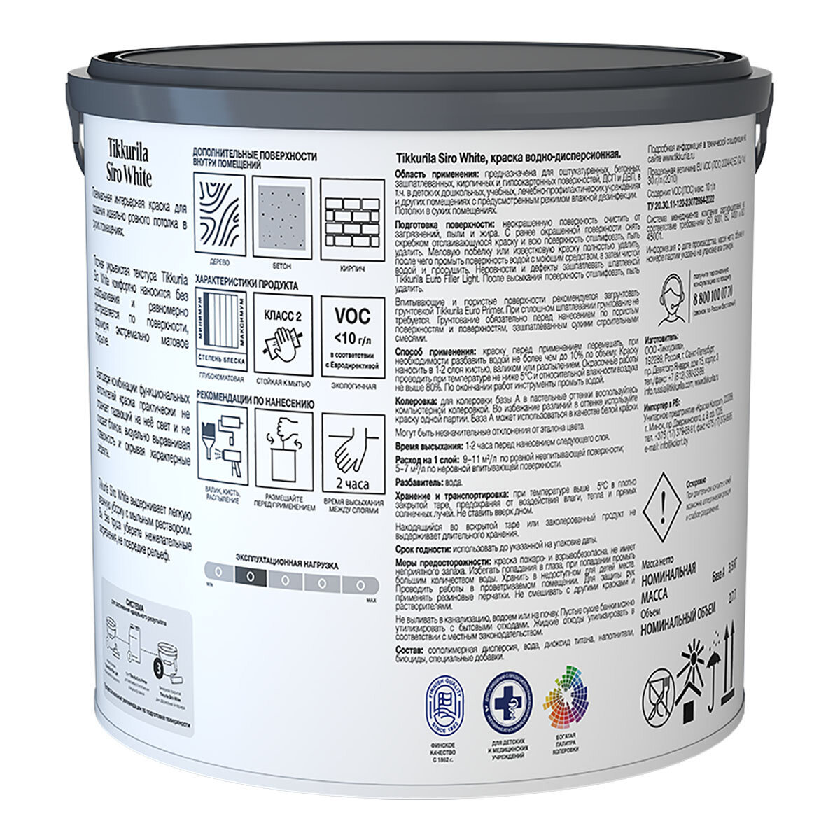 Краска для Потолка Tikkurila Siro White 2.7л Белая, Антибликовая, Глубокоматовая / Тиккурила Сиро Вайт. информация: