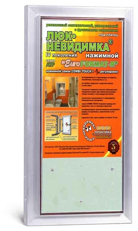Сантехнический ревизионный люк под плитку нажимной АТР 20x40 см Евроформат ПРАКТИКА информация: