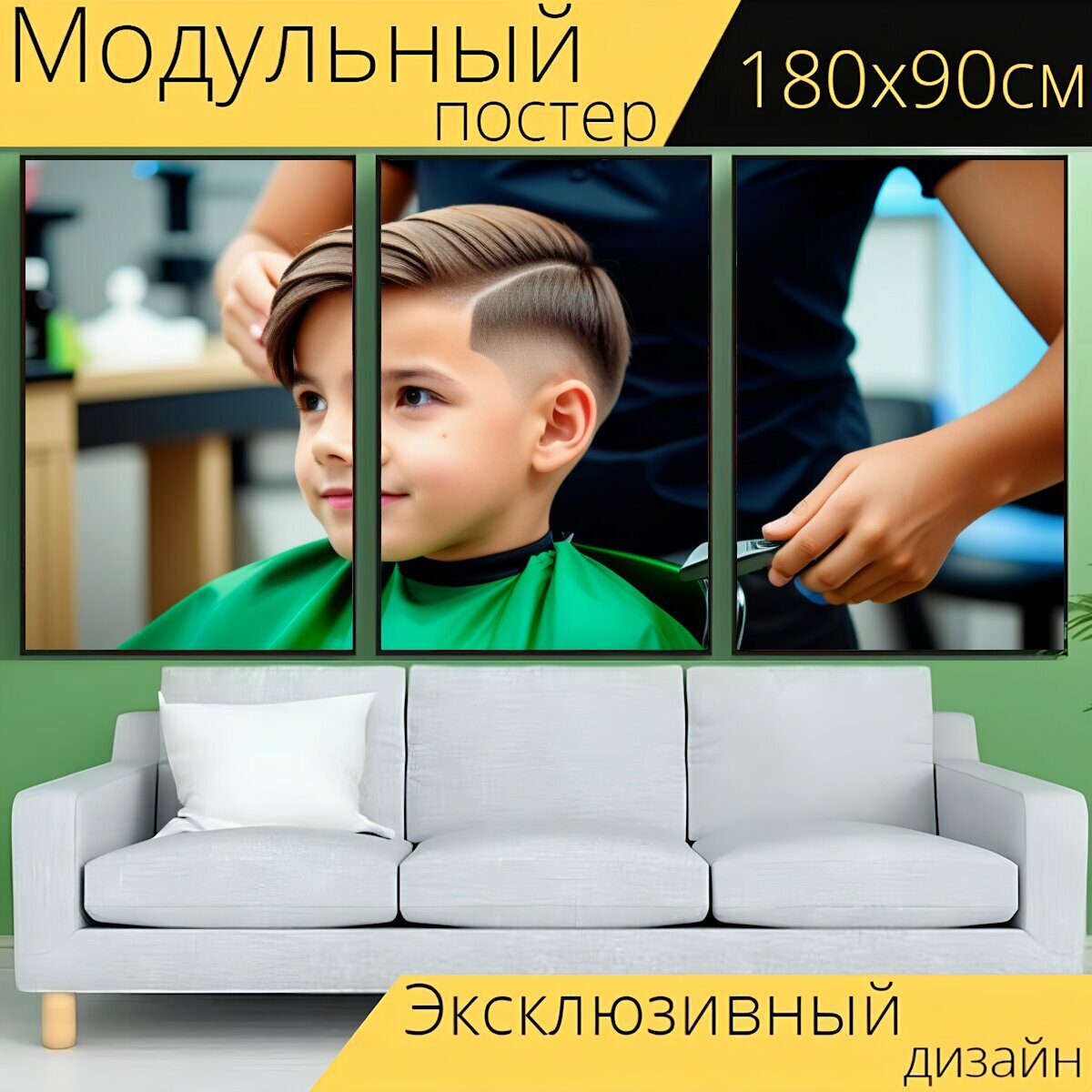 10 цен на Модульный постер в парикмахерскую "Праздничные моменты из ребячьей стрижки" 180 x 90 см. для интерьера на стену