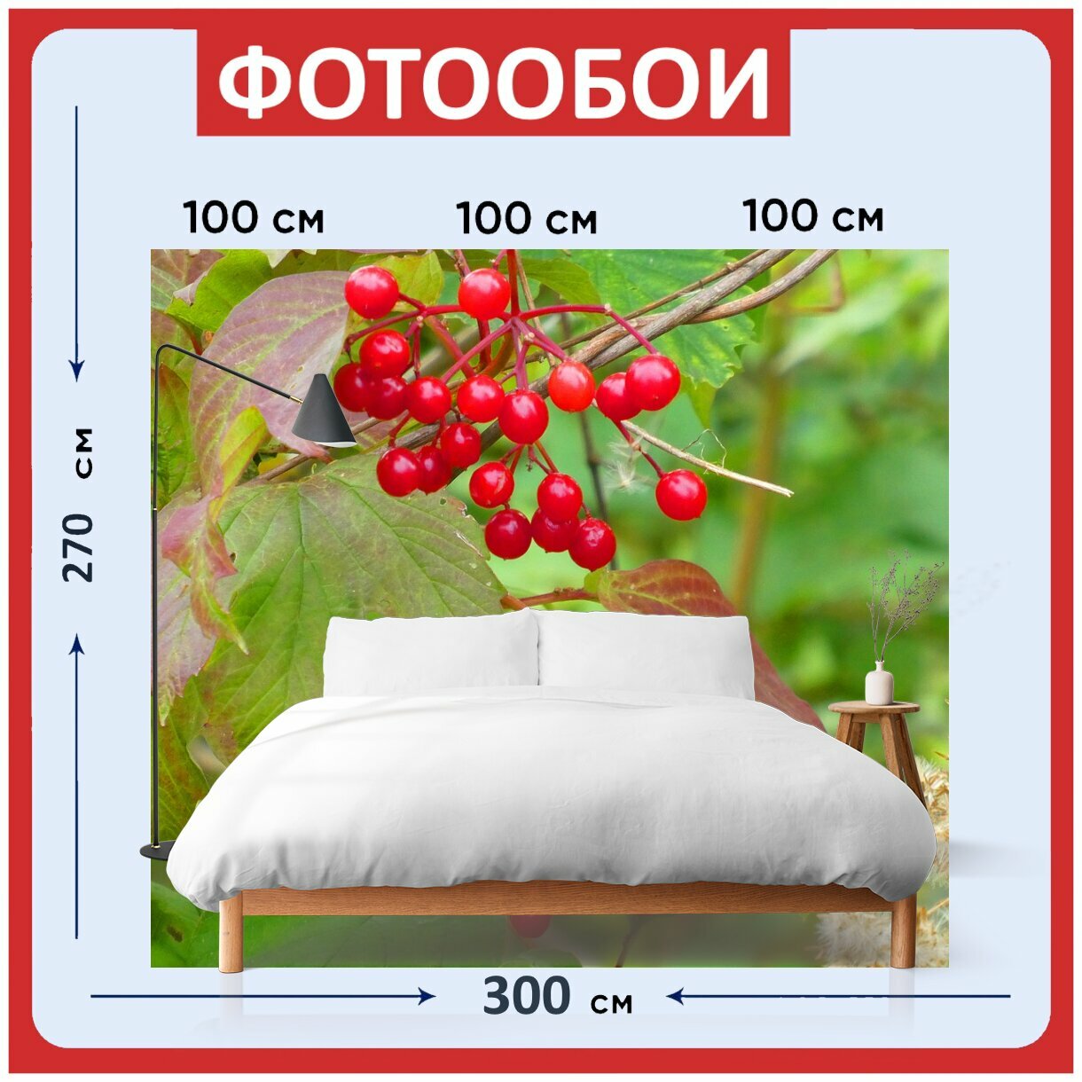 10 цен на Фотообои ударопрочные моющиеся "Ягоды, осень, листья" 300x270 см. флизелиновые на стену