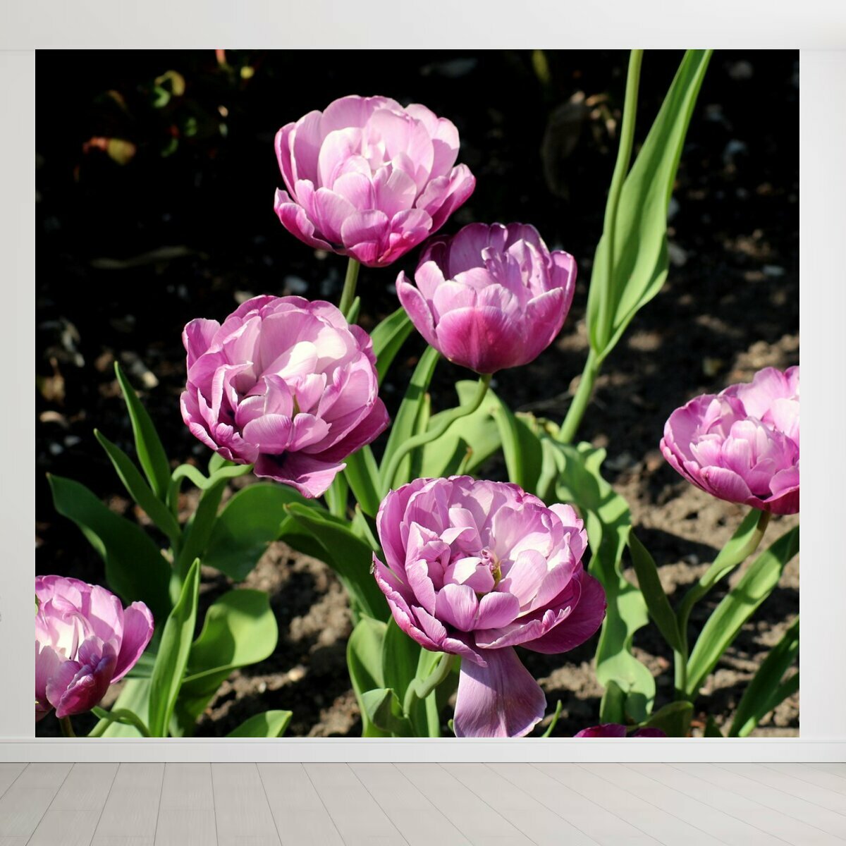Фотообои ударопрочные моющиеся "Тюльпаны, весенние цветы, фиолетовый" 300x270 см. флизелиновые на стену информация: