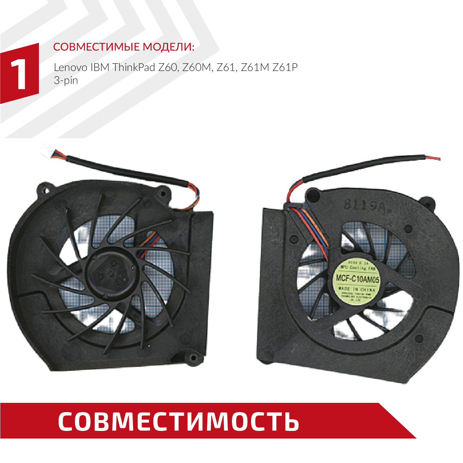 Вентилятор (кулер) для ноутбука Lenovo ThinkPad Z60, Z60M, Z61, Z61M, 3-pin информация: