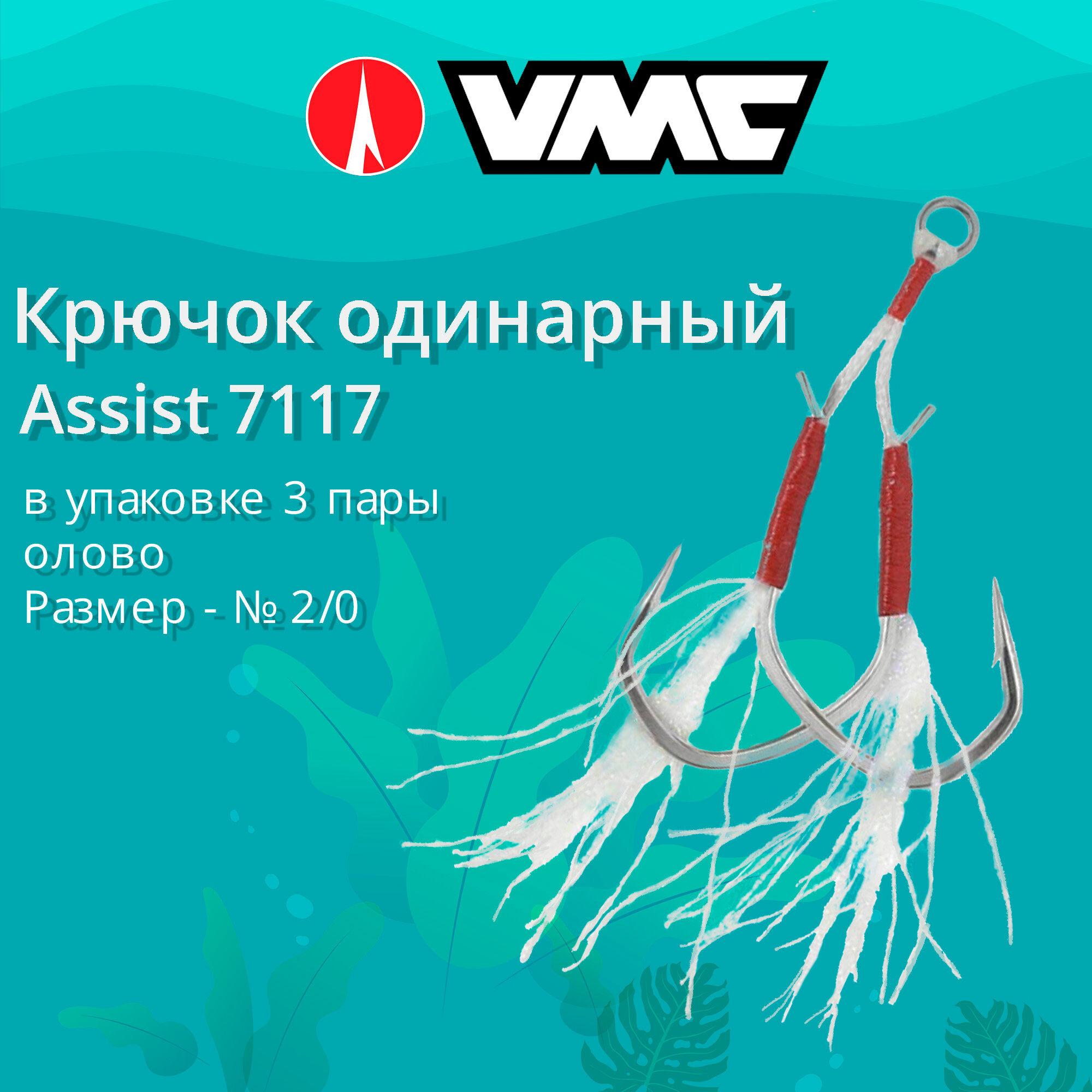 Крючок одинарный рыболовный VMC Assist 7117 TI (олово), №2/0, (3 пары) информация: