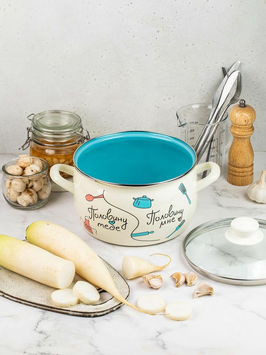 Кастрюля глубокая эмалированная со стеклянной крышкой, 4 л, Половинки 2 760 ₽