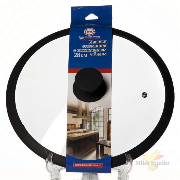 Крышка стеклянная с силиконовым ободом TimA 4828BR 28 см
