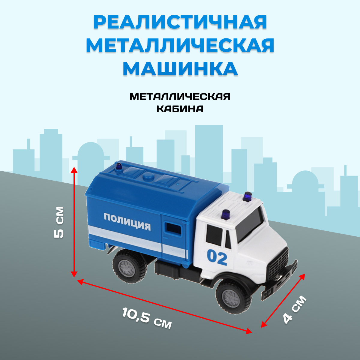 Гараж Полиция, открываются передние и задние ворота, полицейский фургон мет. 1:43