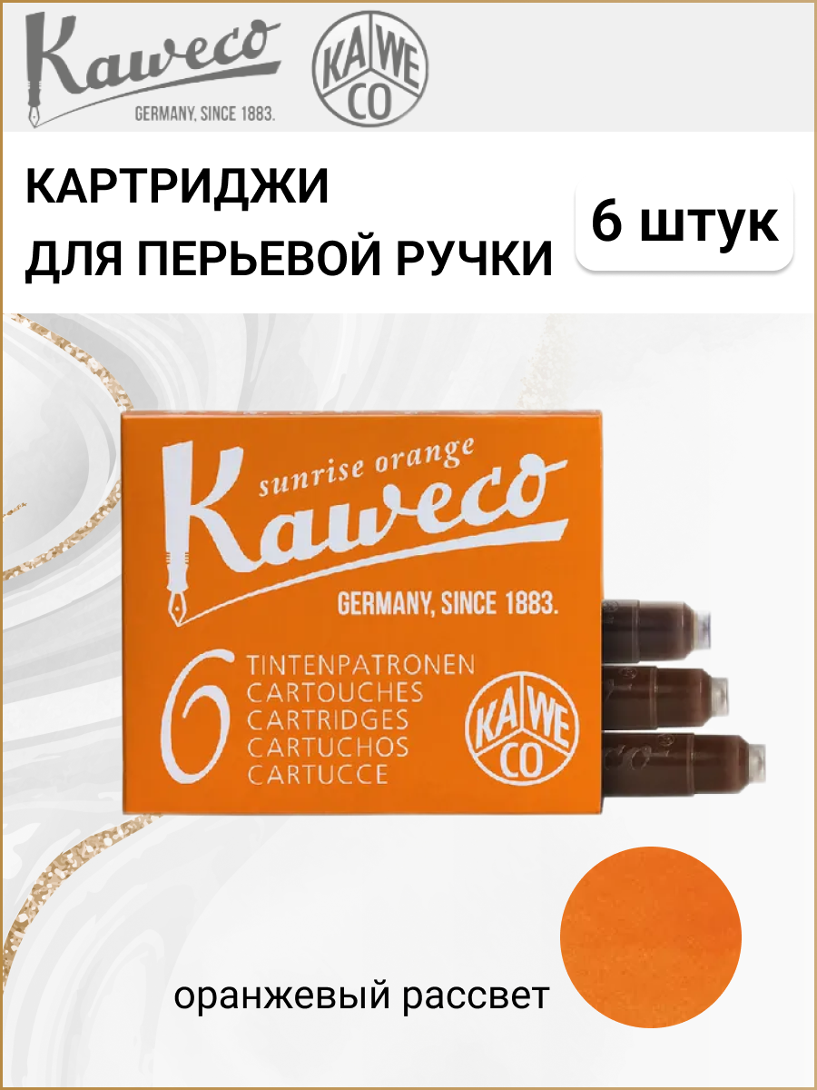 10 цен на Картриджи для перьевой ручки с чернилами Kaweco, набор 6 шт., цвет оранжевый