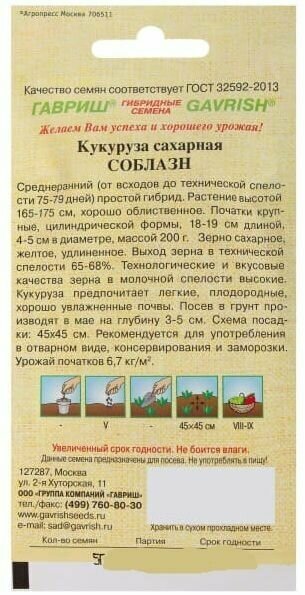 Отзывы на Семена Кукуруза Соблазн сахарная, среднеспелый, (гавриш) 5г (белый пакет)