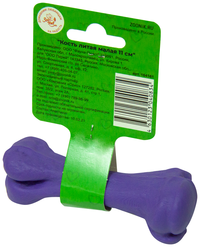 Игрушка Зооник кость малая литая фиолетовая для собак (11 см)